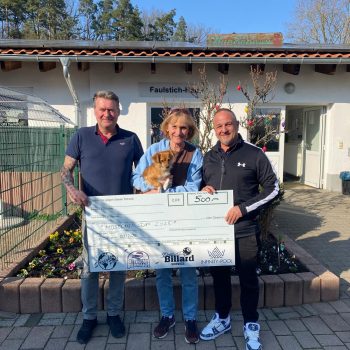 Spendenübergabe vom Mosconti Cup im Pool Billard der Billard Wölfe Gießen e.V. gegen den PBC Gelnhausen e.V., welchen die „Wölfe“ für sich entscheiden konnten. Peter Rattacher (li), Straight Pool Gießen…