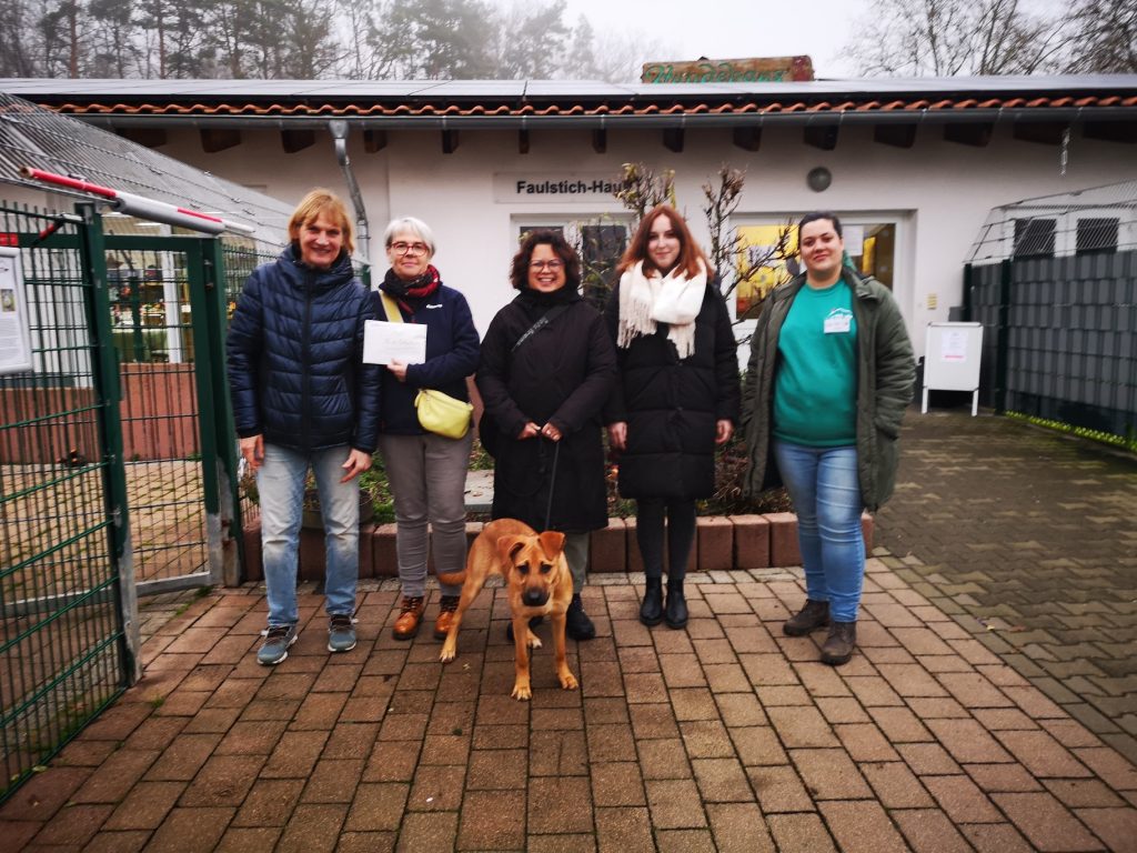 Beim Besuch im Tierheim übergaben die Vertreter des IRJGV Ramona Iser (1. Vorsitzende; 2.von li), Annette Wolkenstein (mitte) und Antonia Neite (2.von re) das gesammelte Geld. Vorsitzende Astrid Paparone und Tierheimleiterin Hannah Wern dankten und freuten sich sehr über diese Spende.