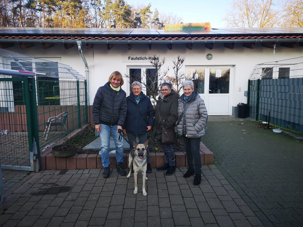 Der Verein Bürger für Bürger e.V. in Hungen hat dem Tierschutzverein Giessen eine Spende von 1000 Euro übergeben. Vorsitzende Astrid Paparone (re) bedankte sich herzlich für die Spende bei den Vereinsmitgliedern (vo li nach re) Andrea Krüger, Annelie Stampfer und Ursula Nicolai und führte sie durch das Tierheim.Das Geld geht zu gleichen Teilen an das Tierheim und an die Huppert-Siftung, die Menschen unterstützt, die sich die Behandlung ihrer kranken Tiere nicht leisten können.Der Verein betreibt in Hungen den Kleiderladen „Allerhand“, in dem gespendete Kleidung verkauft wird. Da alle dort ehrenamtlich arbeiten, bleibt jährlich ein Überschuss und das Geld wird an soziale Initiativen gespendet .