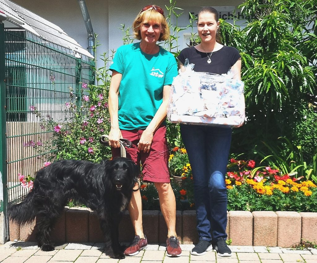 Bianca Ruppel(re) wünschte sich zum 25 jährigen Jubiläum bei Galeria Gießen, dass ihre Kolleginnen und Kollegen etwas für das Tierheim spenden. Die Tierfreundin hörte von den Nöten im Tierheim und wollte helfen. So kamen 200 Euro zusammen, die sie zusammen mit einigen Sachspenden, Astrid Paparone überreichte. Die Vorsitzende freute sich sehr über die Spende und führte Frau Ruppel durch das Tierheim. Hierbei konnte sich die Jubilarin von der tollen Arbeit überzeugen die dort geleistet wird und einen Eindruck gewinnen, wie viel Hilfe, auch von Ehrenamtlichen, noch benötigt wird. Selbst kleinere Unterstützungen wie ein Kuchen für das „Cafe Tierlieb“ oder Hilfe bei Reparaturen, helfen dem Tierschutzverein sehr.