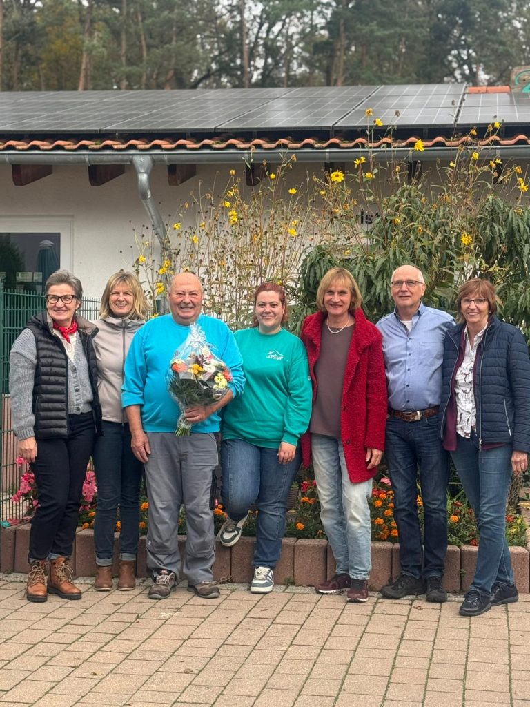 Der Vorstand bedankt sich bei Reinhold Thomas für seine jahrzehntelange Unterstützung. Einen Blumengruß für das Ehepaar Thomas gab es dazu für ihr goldenes Ehejubiläum.