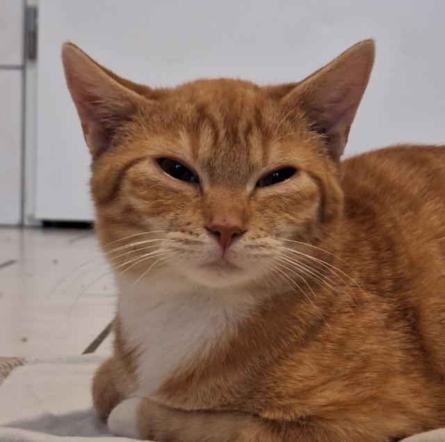 Durch eine langwierige medizinische Behandlung hat Aik Kontakt zum Menschen bisher leider eher negativ verknüpft. Deshalb ist das Handling im Moment noch etwas tricky – wenn es ihm zu viel wird, versucht er zu flüchten. Mit Geduld, Ruhe und einem katzenerfahrenen Blick lässt sich das jedoch gut managen.