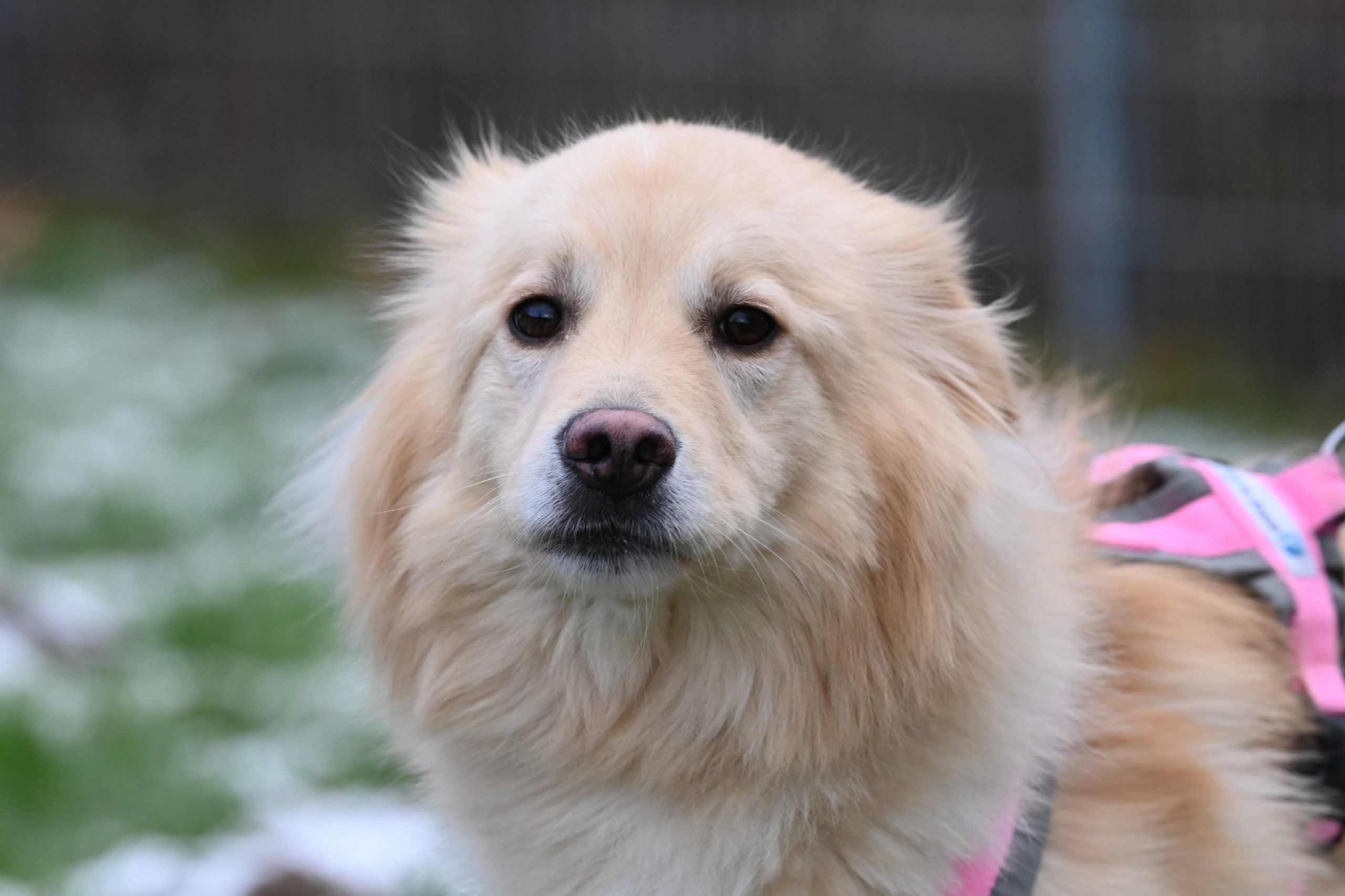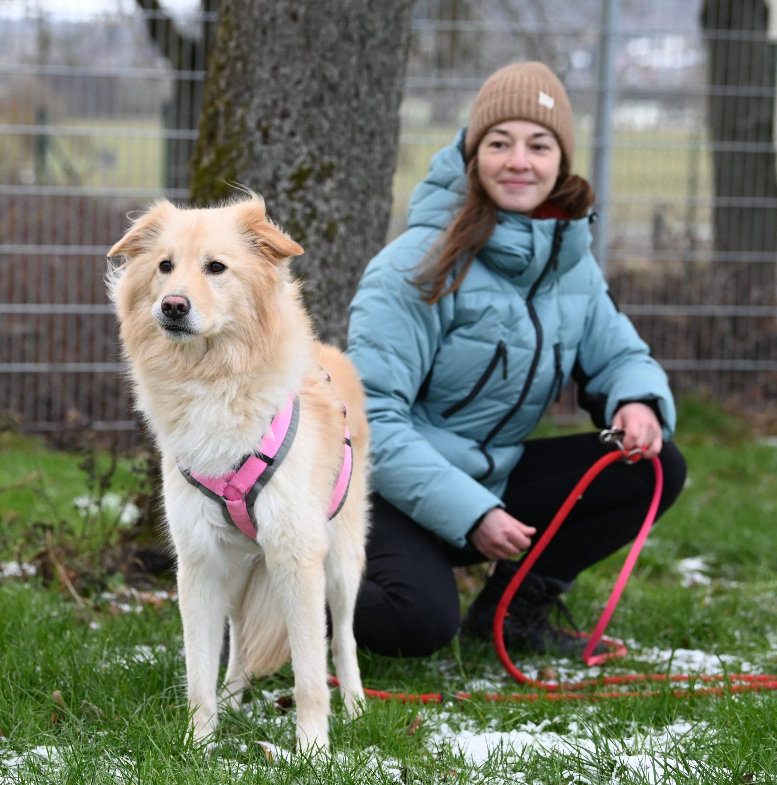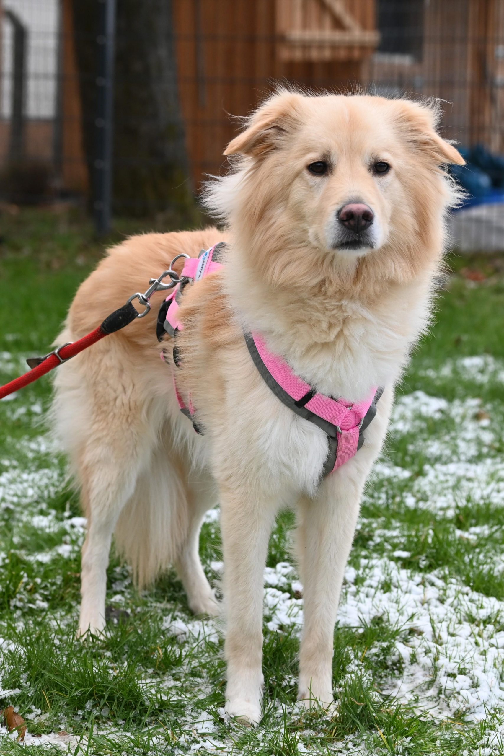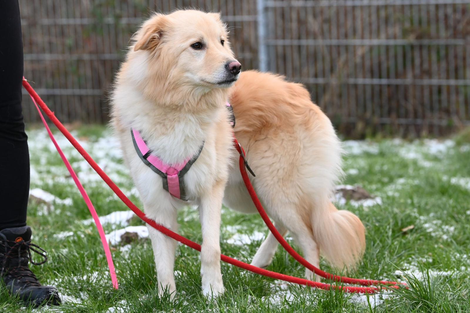 Auf Spaziergängen ist er noch sehr durch die äußeren Reize abgelenkt. Zur Zeit wird an seiner Orientierung zum Menschen und der Leinenführigkeit trainiert.