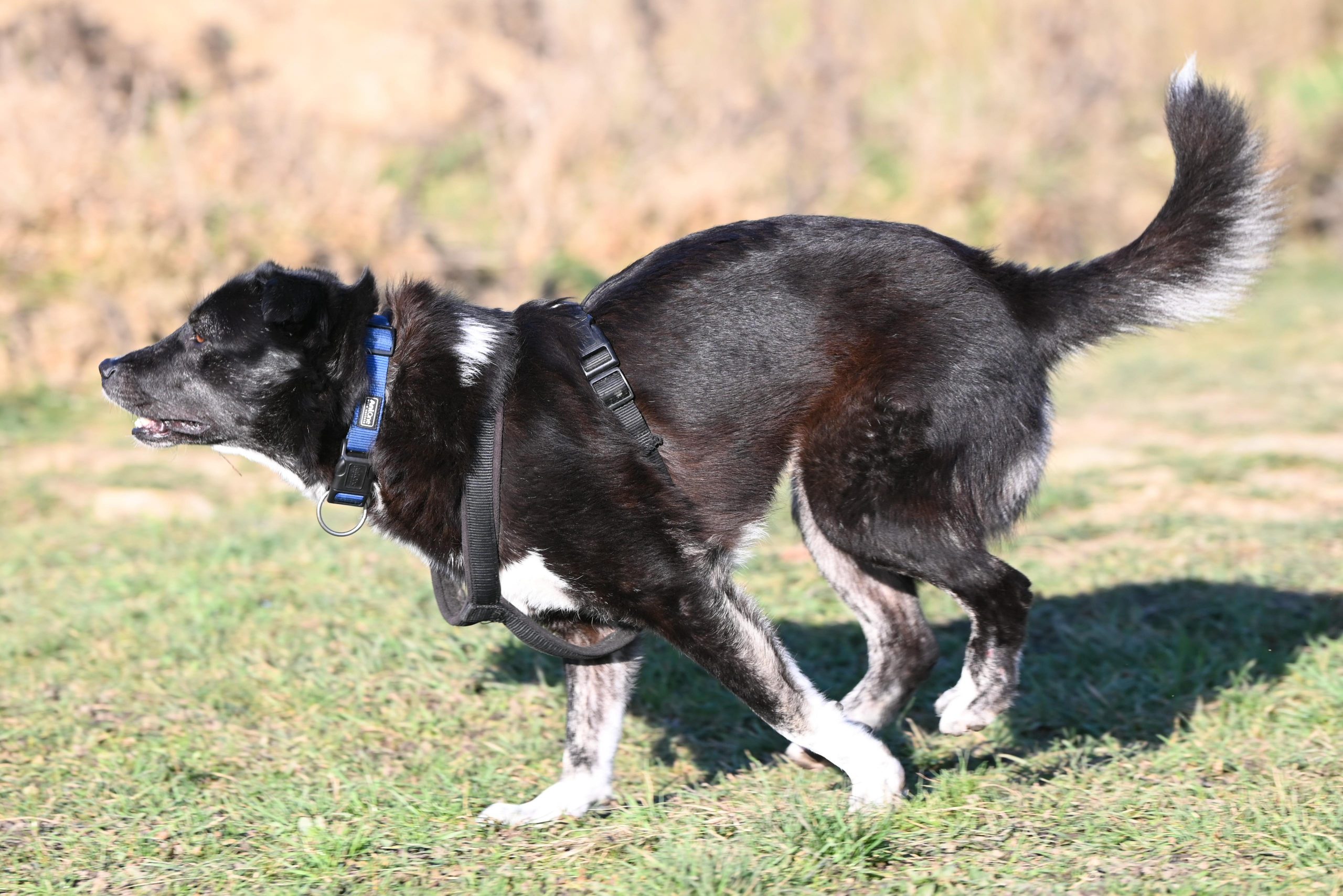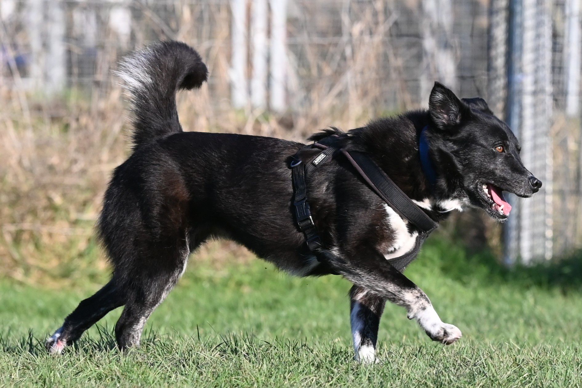 Es ist schön zu beobachten, wie sie zunehmend mit ihren Hundekumpels spielt und sich gerne auf dem Sandplatz austobt. Ihre Energie ist beeindruckend – auch längere Strecken läuft sie mit Begeisterung, selbst im schnelleren Gang.