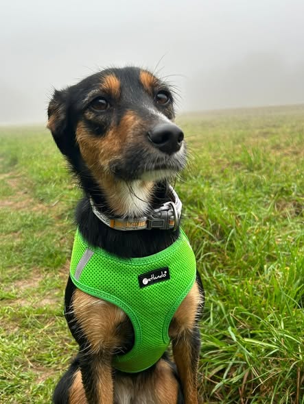 Klette (aka Chloe) übt auf der Pflegestelle grade den Freilauf und schlägt sich damit bisher sehr zuverlässig! Sie ist unfassbar engagiert Neues zu lernen.