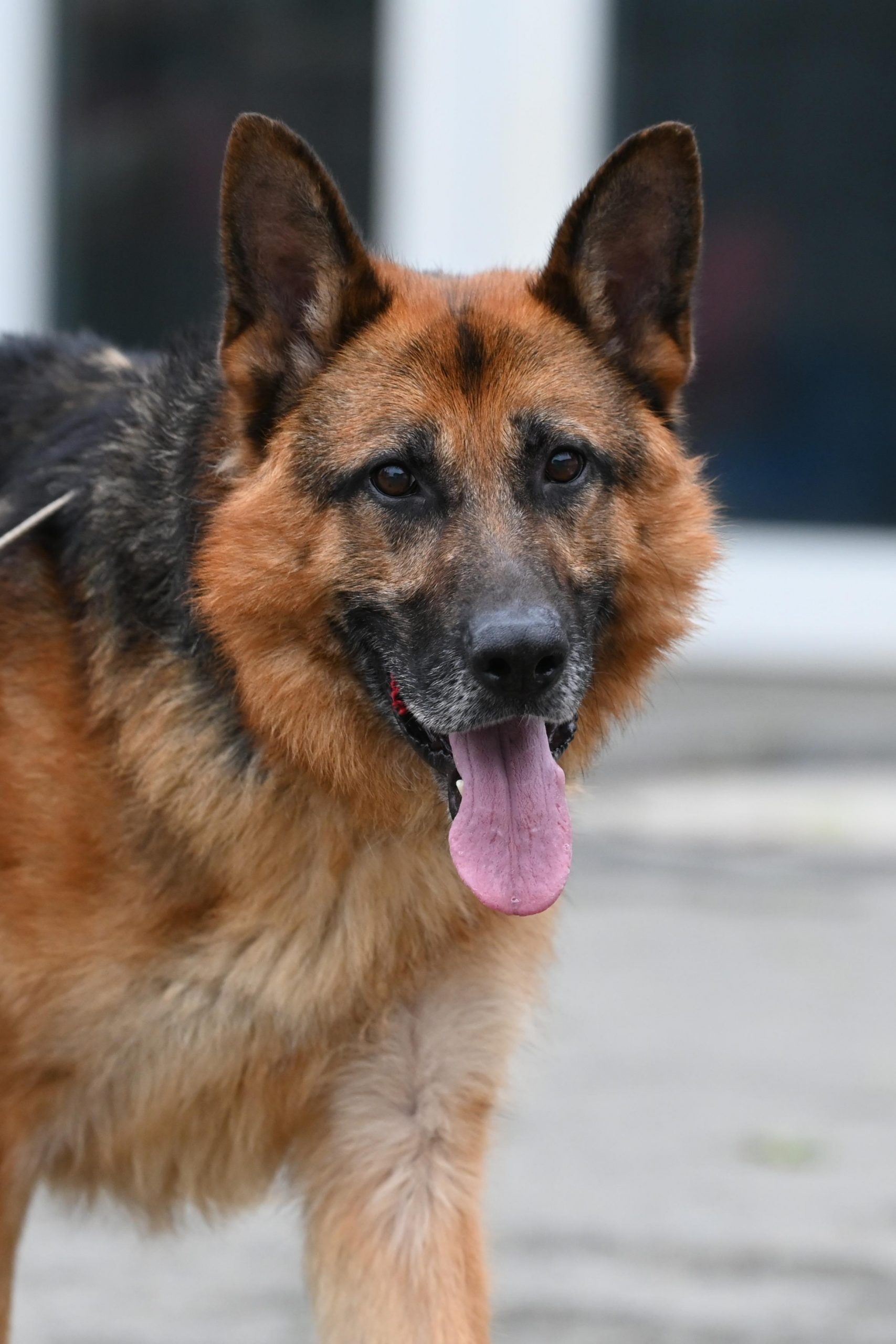 Gesundheitlich wird er immer fitter. Sein Körperbau weist allerdings den Schäferhund typischen abfallenden Rücken auf.