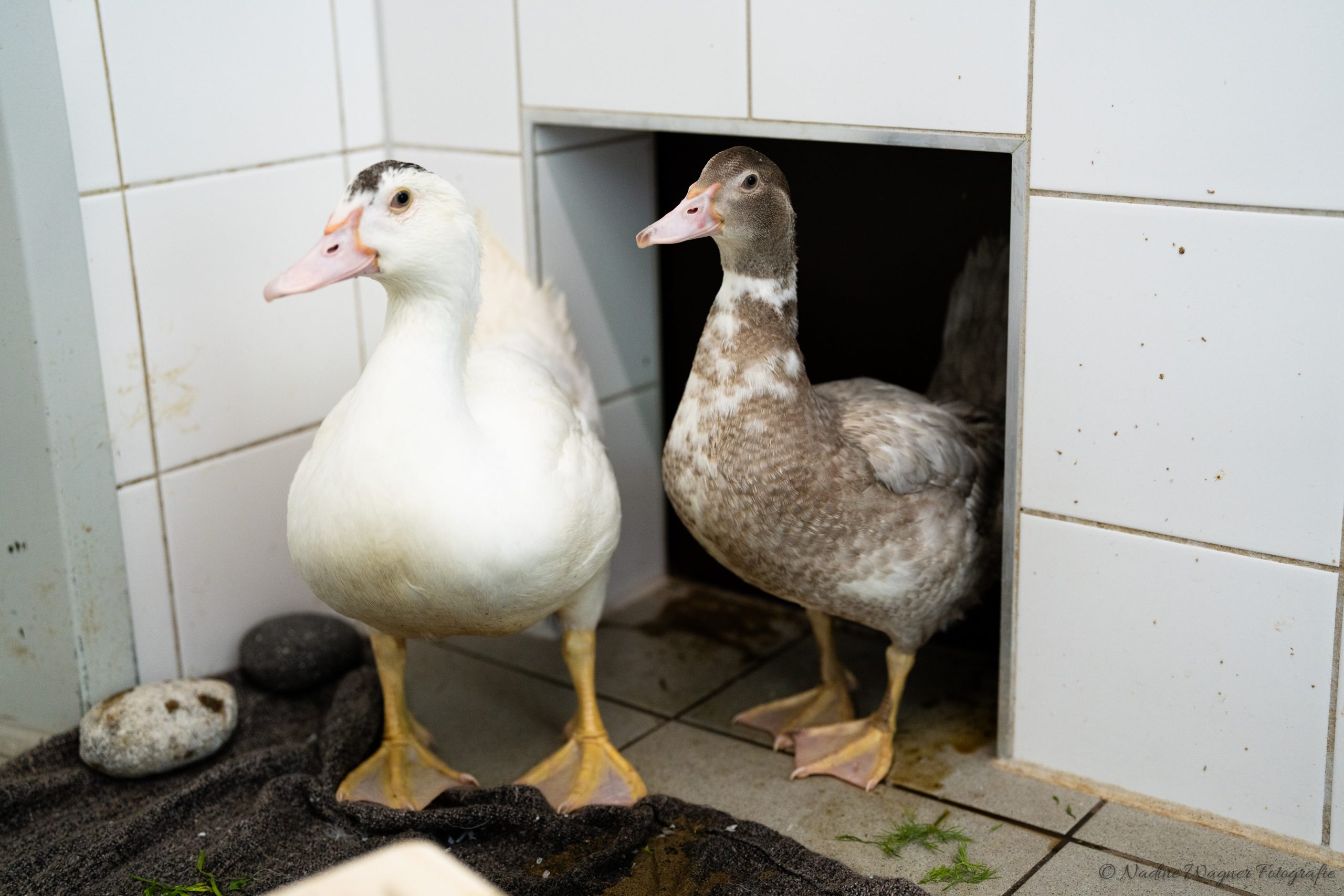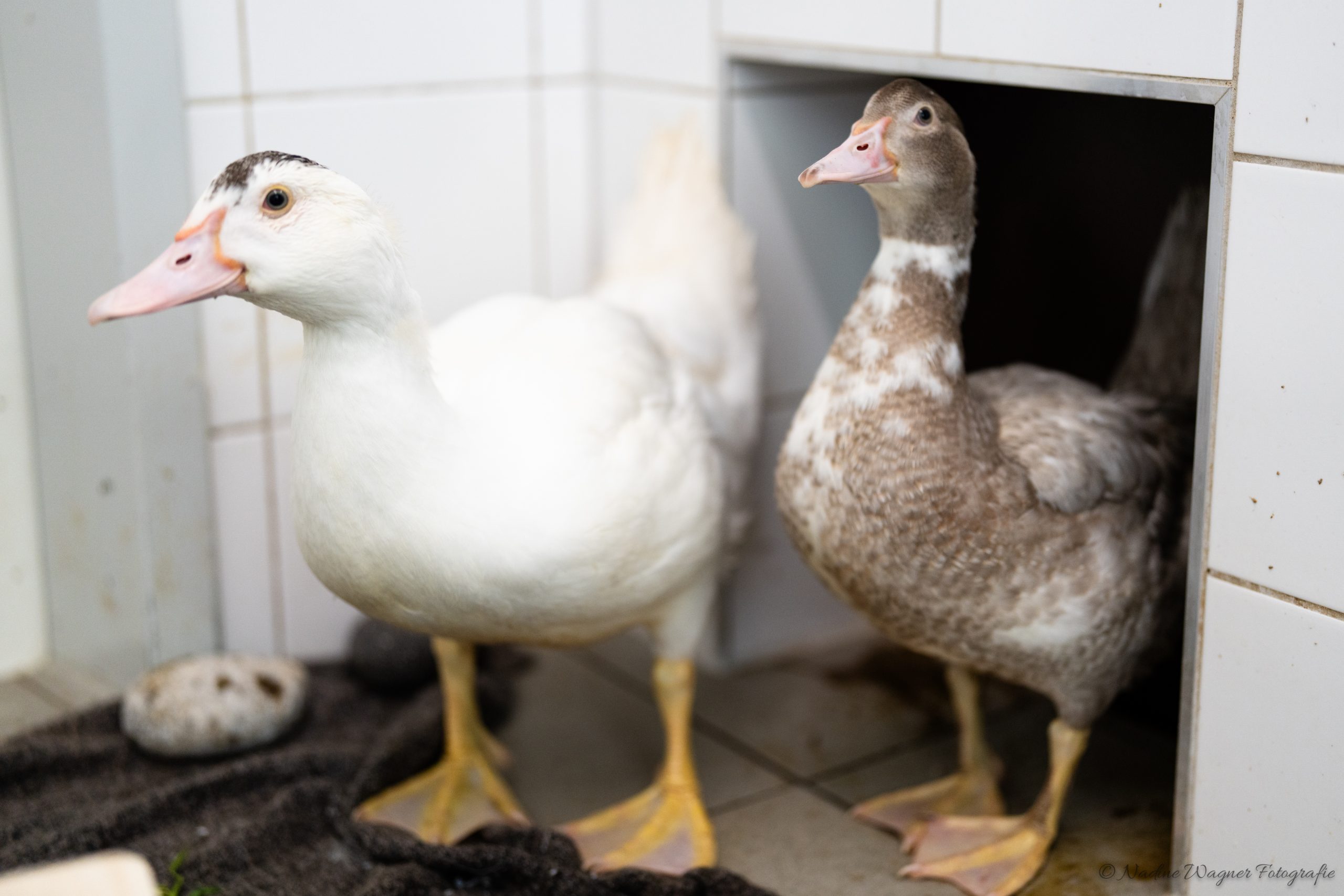 Donald und Daisy sind unsere erkundungsfreudigen Enten. Die Beiden wurden Ende August noch als kleine Kücken in einem Käfig auf einem Parkdeck ausgesetzt. Die Finder brachten sie zu uns ins Tierheim. Hier konnten sie medizinisch versorgt werden und sind nun bereit für neue Abenteuer in einem artgerechten Zuhause.