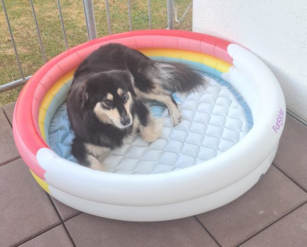 Leine, Geschirr, Halsband, Fernseher, Menschen, Gassi gehen usw. war alles blöd und fremd. Neugierig ist sie trotzdem. Hunde liebte sie bisher alle, die uns begegnet sind. Auch Hundebesuch bei uns zu Hause ist gar kein Problem. Sie teilt ihr Spielzeug und Futter. Sie hat sich von Anfang an bei uns „alles gefallen lassen“. Verfilzungen am Schwanz oder hinter den Ohren konnten sofort ohne Probleme aus dem Fell geschnitten werden. Und auch Baden war kein Problem, wenn wohl auch nicht ihre Lieblingsbeschäftigung. Sie genießt es gekämmt zu werden und lässt sich relativ gut die Krallen schneiden und Ohren säubern, wenn notwendig. Sie ist ein Schatz mit ihren Menschen. Hope planscht gerne im Wasser und taucht nach Steinen oder Leckerlis. Sitz, Platz, Deckenkommando, Pfötchen geben und Rückruf klappen relativ gut. Silvester war auch gar kein Problem.