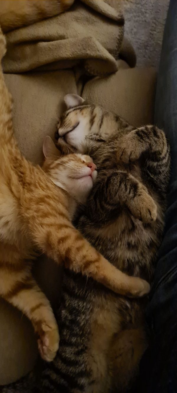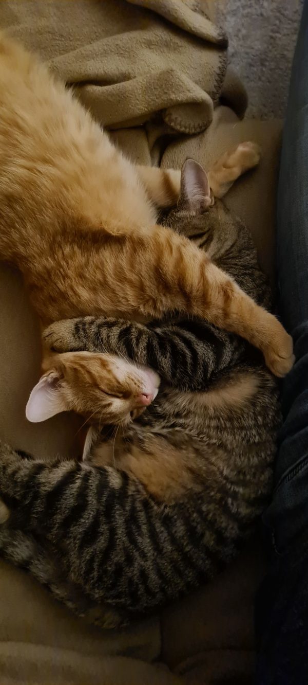 Leo ist der rote Kater und Mayla die grau getigerte Katze. Sie sind jetzt 6,5 Monate alt und sind ein ganz liebes und verschmustes Katzenpärchen.