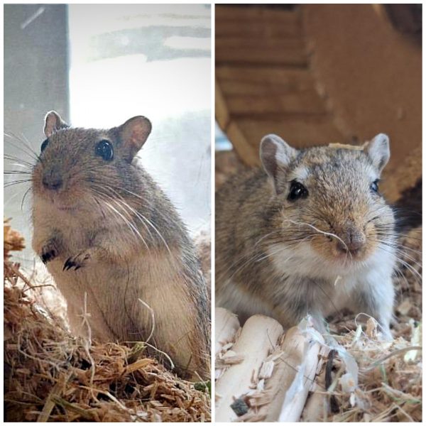 Mila und Nala sind zwei Gerbil-Weibchen. Gerbils sind auch als Wüstenrennmäuse bekannt.