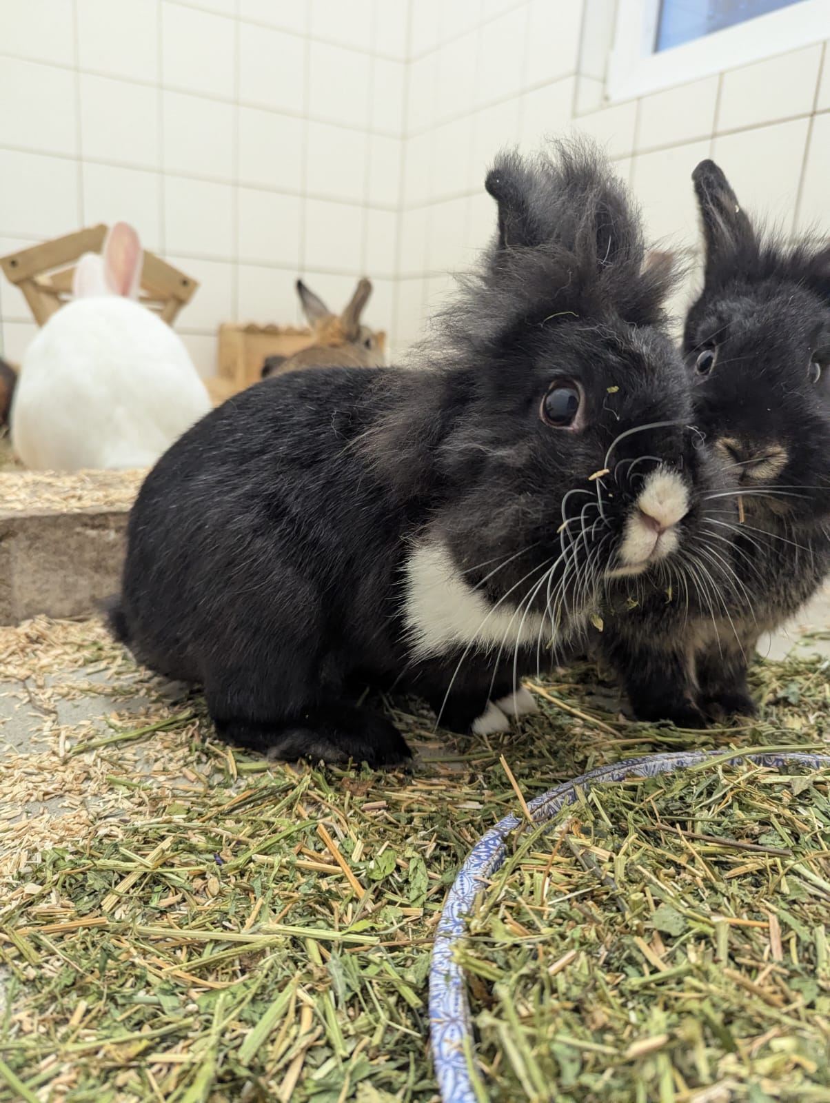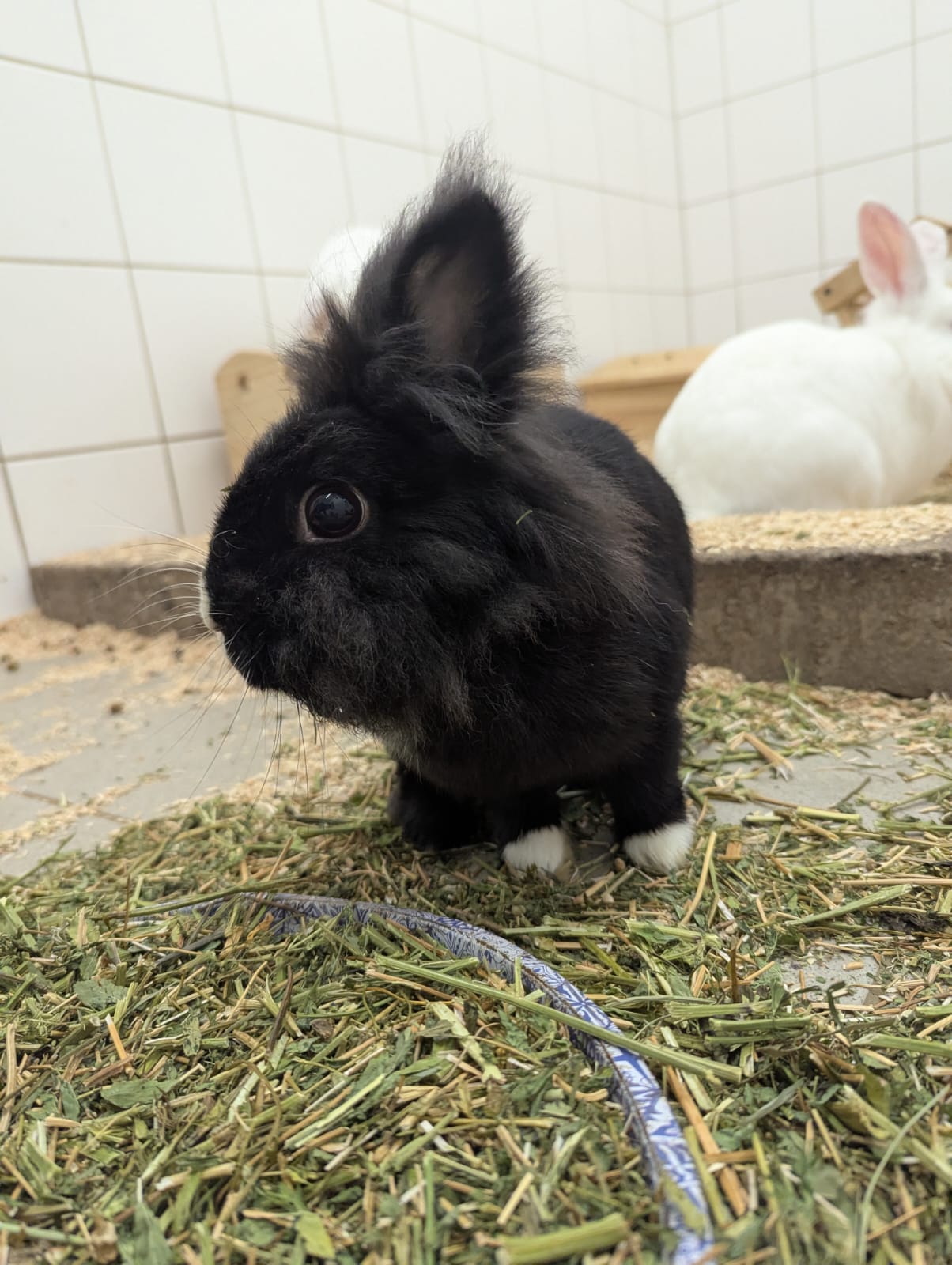 Kaninchen sind absolut gesellige Tiere und sollten daher mindestens zu zweit gehalten werden. Pebbles kann daher mit einem Freund in ihr neues Zuhause ziehen oder in eine bestehende Gruppe integriert werden.