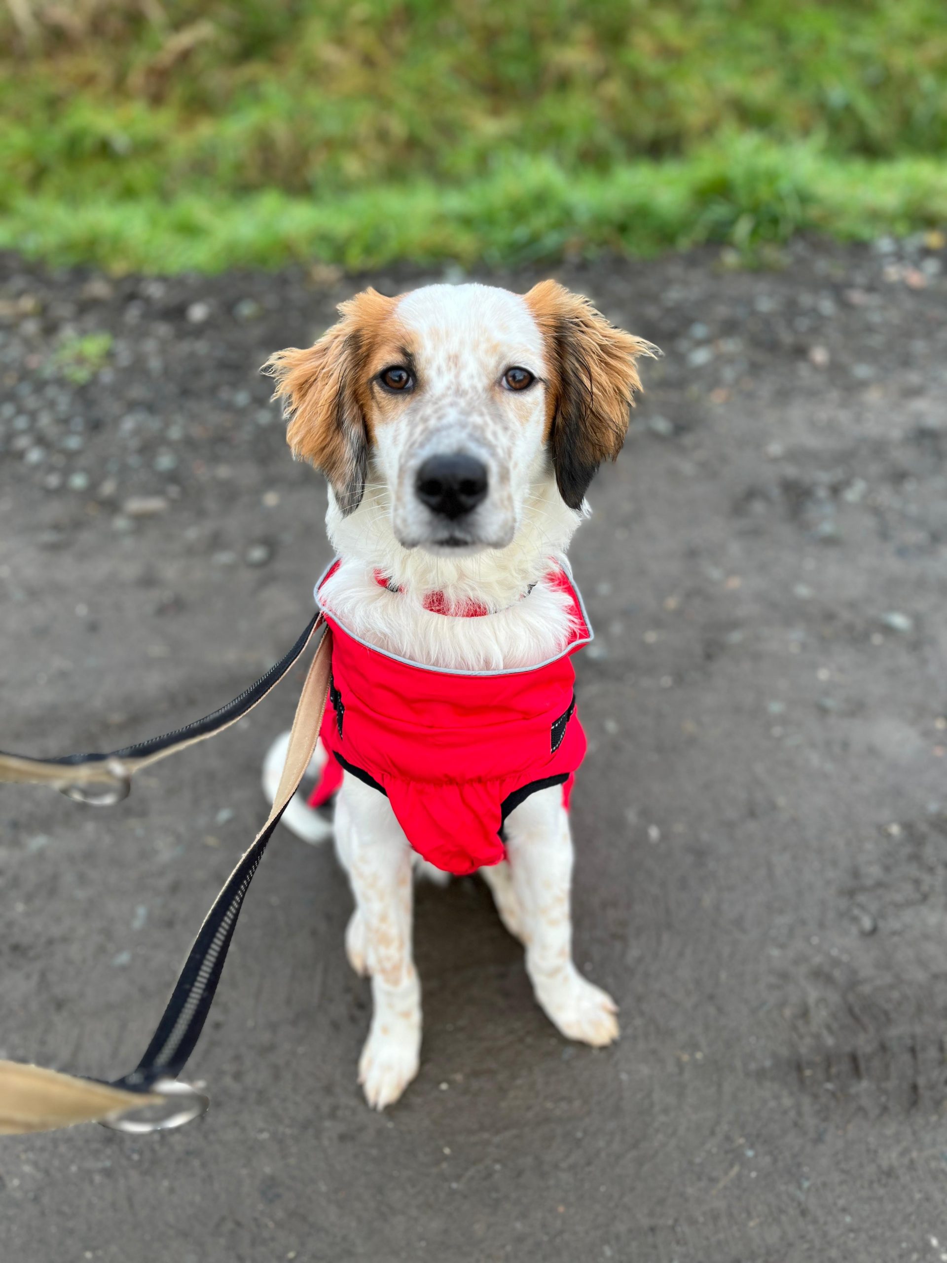 Piet ist ca. 5-6 Monate alt – in Zeichnung eines English Setters. Er präsentiert sich quirlig und aufgedreht. Piet beschwert sich auch laut stark, wenn er allein zurück gelassen wird. Der lustige Welpe macht einen sehr aufgeweckten, agilen und fordernden Eindruck. Piet sucht Menschen die seine Anlagen fördern, ihn aber auch beibringen zur Ruhe zu kommen.