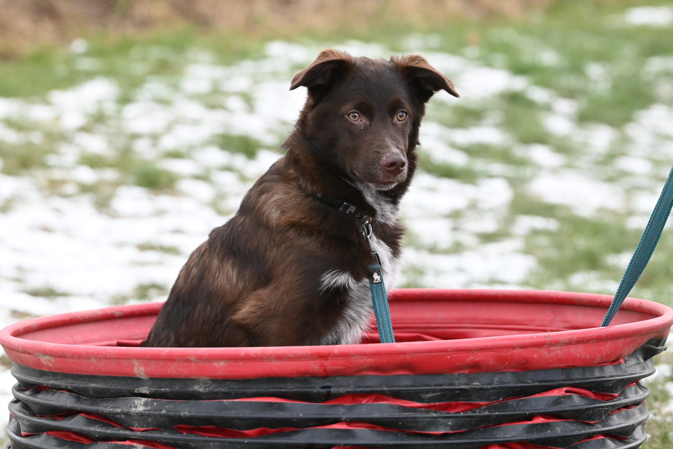 Pretzel hat Leine und Geschirr bereits kennen gelernt und liebt es draußen zu sein. Er lernt erste Kommandos und Tricks und durfte bereits seine Hundebegleiterin Zuhause besuchen. Wie er sich in der Stadt oder in lauten Gegenden verhält können wir aktuell nicht genau sagen.