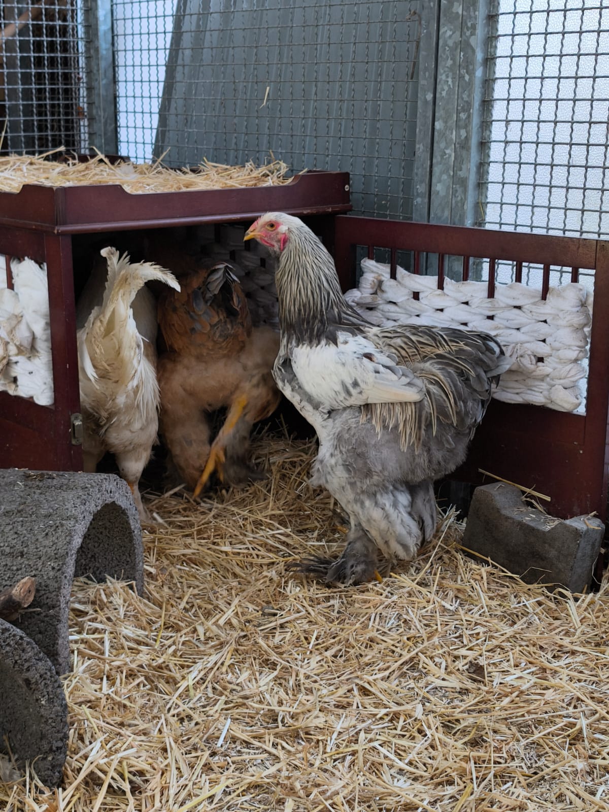 4 Hähne wurden uns einfach über den Zaun geworfen, kaum 20m entfernt von unserem Fundtierhaus, wo sie sicher und warm gesessen hätten. So saßen sie – wir wissen nicht wie lange – bei Minusgraden im zweistelligen Bereich bei uns hinterm Zaun, bevor sie morgens von den Tierpflegern entdeckt und eingesammelt wurden.