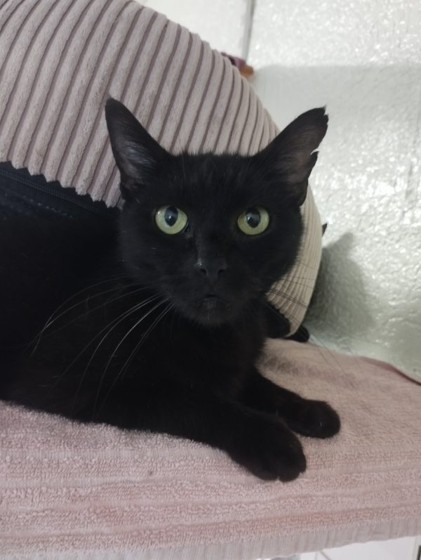 Die schwarze Katze ist sehr Menschen bezogen und freundlich. Sie geht aufgeschlossen und verschmust auf jeden zu – zeigt allerdings auch deutlich, wenn sie keine Lust mehr hat.