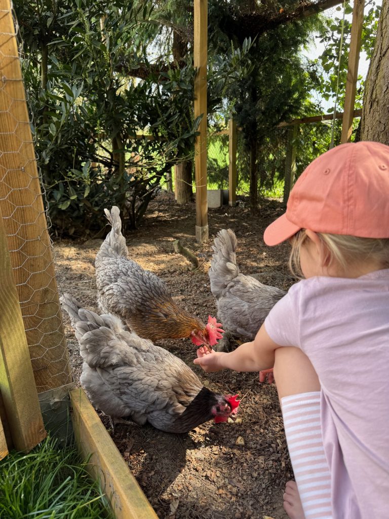 Die Hennen sind so zahm und neugierig, fressen sofort aus der Hand der Kinder. Wunderschön! Vielen Dank für diese schönen Tiere.