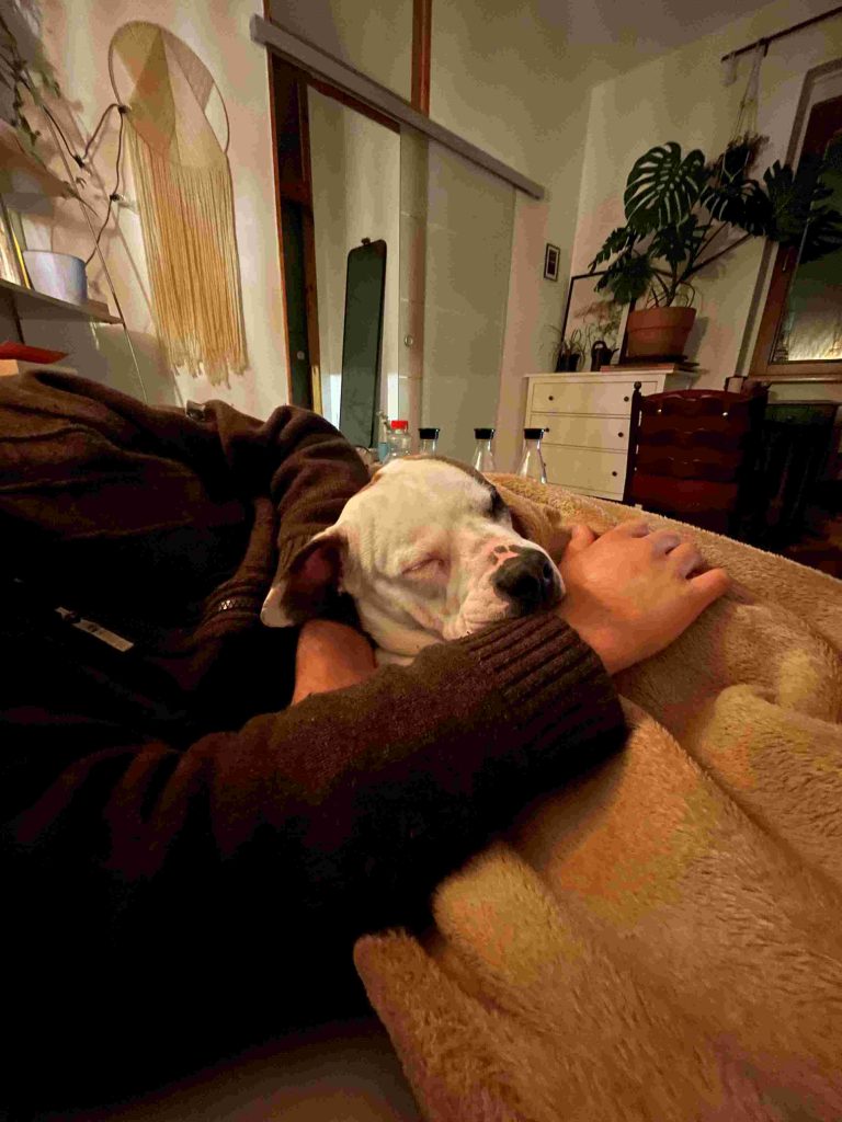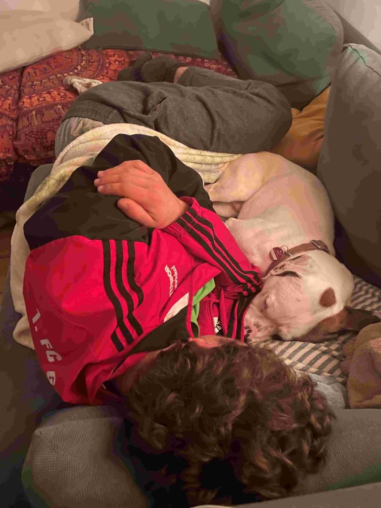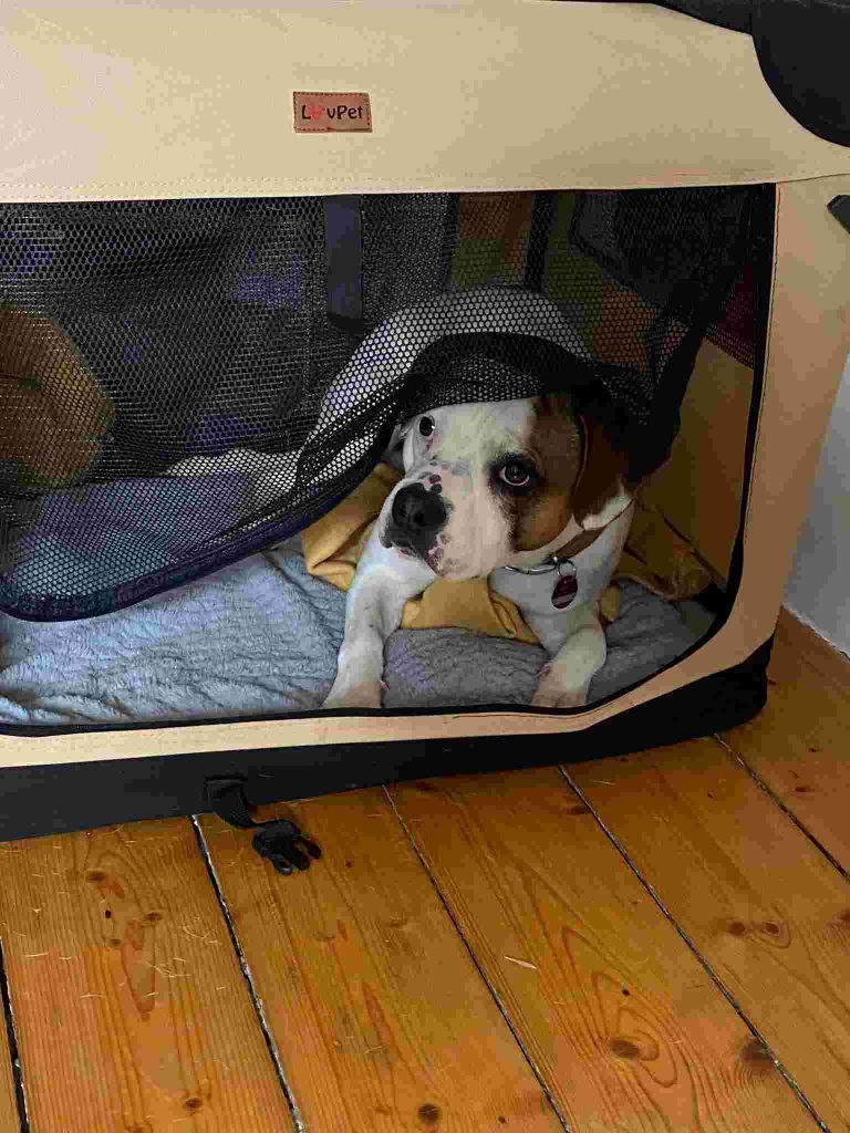 Balou musste sich natürlich erst an seine neue Umgebung und vorallem seine eigene Hundebox gewöhnen, aber bereits nach ein paar Tagen hat er erkannt, dass er sicher in seiner eigenen kleinen Höhle liegen kann. Seit dem ersten Tag will er aber vorallem eins: kuscheln. Er sucht immer unsere Nähe und liegt abends auch gerne mit uns auf dem Sofa, träumt und schnarcht unglaublich laut. Balou liebt es auch mit uns Auto zu fahren, dort entspannt er sofort und schläft innerhalb von wenigen Minuten. Am liebsten würde er jedes Mal ins Auto springen, wenn wir daran vorbei laufen.