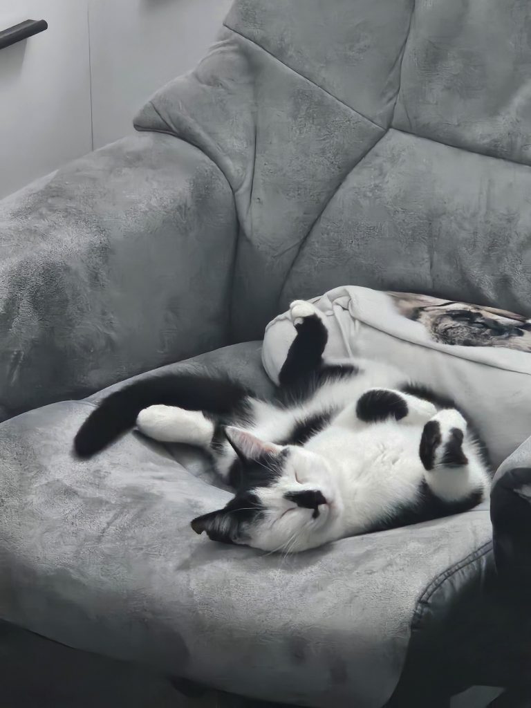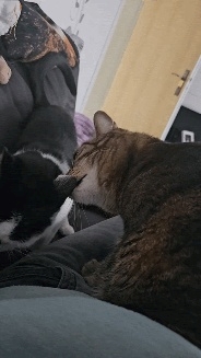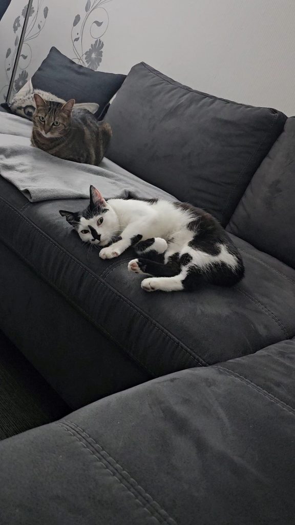 Loki wusste am Anfang nicht so richtig, was sie von der neuen Mitbewohnerin halten sollte. Einerseits war da die Neugier, wer das ist, und auf der anderen Seite ging sie dann doch lieber auf Abstand. Hier und da ein kleines Fauchen von Loki, wenn Beli ihr wieder zu nahe kam und es Loki zu viel wurde. Beli war das Ganze aber ziemlich egal und hat sich nicht einschüchtern lassen. Sie hat immer wieder versucht, Loki zu gefallen. Und mit jedem Tag wurde auch Loki entspannter. Zu erst wurde zusammen auf der Couch gelegen, natürlich mit Abstand, bis dieser sich auch immer mehr verringerte.