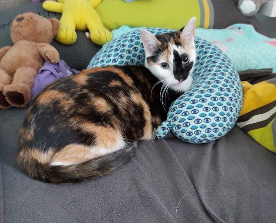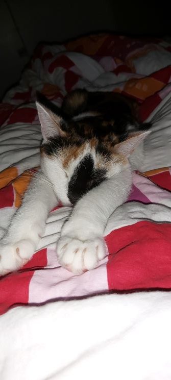 Die erste Woche nach ihrer Adoption versteckte sie durchgegend unter unserer Couch und kam nur zum fressen und auf’s Katzenklo gehen raus. Danach näherer sie sich plötzlich gaaaanz langsam an. Das kleine schüchterne Kätzchen wurde von Tag zu Tag immer mutiger und auch frecher. Nach ca. 3 Wochen habe ich dann ihre “Probezeit” bestanden, denn nun durfte ich sie zum ersten mal streicheln! Mittlerweile sind wir ein Herz und eine Seele.