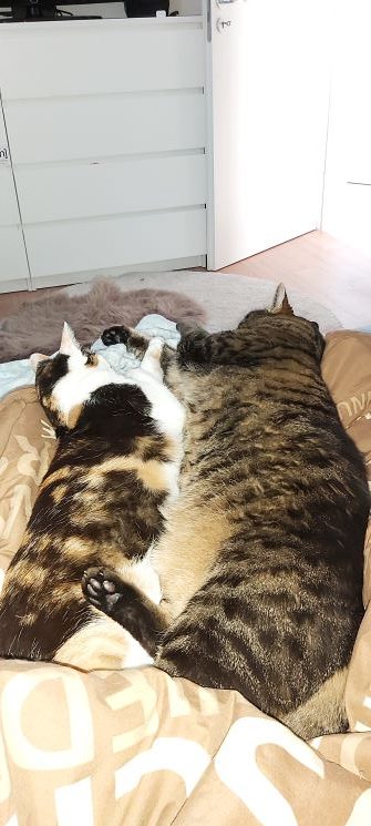 Mit ihrem Katzenbruder Benji, versteht sie sich super! Das sieht man im gemeinsamen Schmusen und sauber machen. Bibi spielt unheimlich gerne mit Katzenangeln und jagt im Sommer jeder Fliege hinterher. Ich denke, dass wir Bibi ein schönes Zuhause ermöglicht haben, in dem sie sich sicher und wohl fühlt. Die Entwicklung, die Bibi gemacht hat und das Vertrauen welches sie uns mittlerweile schenkt finde ich wunderbar.