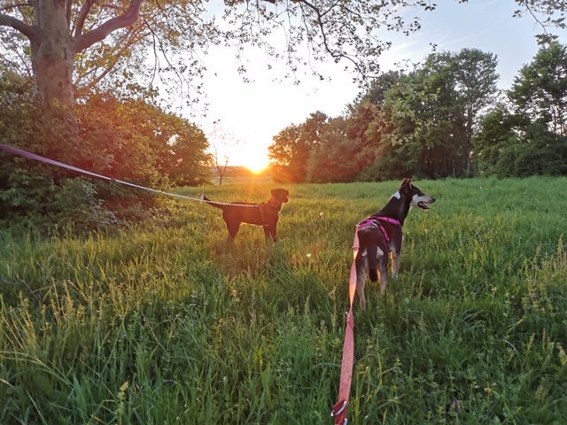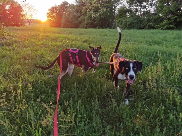 Heute habe ich ein Sicherheitsgeschirr bestellt, weil das kleine Schlauerle schon rausbekommen hat, wie es aus dem Geschirr rauskommt, um die Felder nach Hasenkot abzusuchen 🙂 🙂