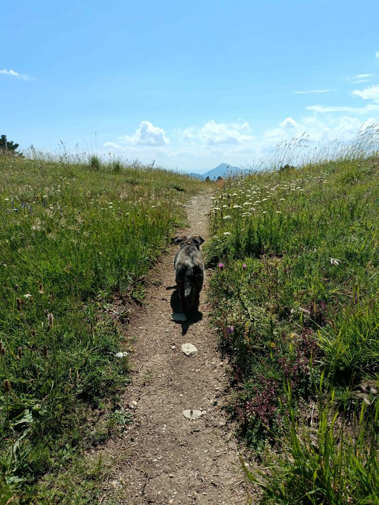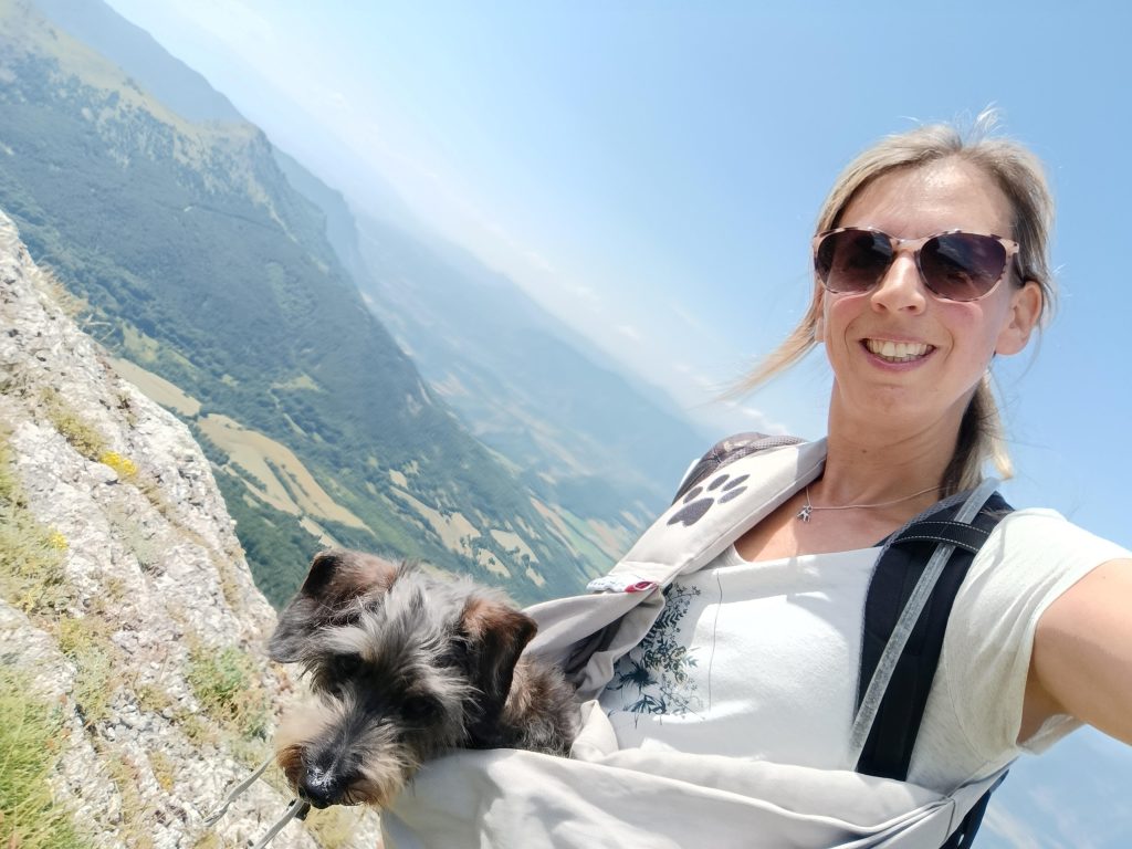 Cinderella lebt jetzt schon seit fast einem halben Jahr bei uns. Wir sind nach wie vor wirklich sehr glücklich mit ihr. Bei uns hat sie ein Recht aktives Leben. Sie geht jeden Morgen mit mir zu den Pferden und findet es super über die Wiesen zu laufen, nach Mäusen zu suchen und überall zu schnüffeln. Meistens geht sie einmal in der Woche mit ins Büro und da wird sie auch von allen geliebt und betüddelt. Im Juli waren wir 2 Wochen in Frankreich, das hat sie auch sehr gut mitgemacht. Wir waren viel wandern und haben die Gegend erkundet. Ab und an geht sie mit fliegen, das machen wir wirklich nur ganz kurze Strecken (15-30 Minuten) aber auch hier ist sie entspannt und schläft nach kurzer Zeit auf dem Schoß. Sie geht immer mit zu meinen Reitstunden und Reitkursen. Auch hier ist sie entspannt und wird von meinen Reitschülern auch immer betüddelt.