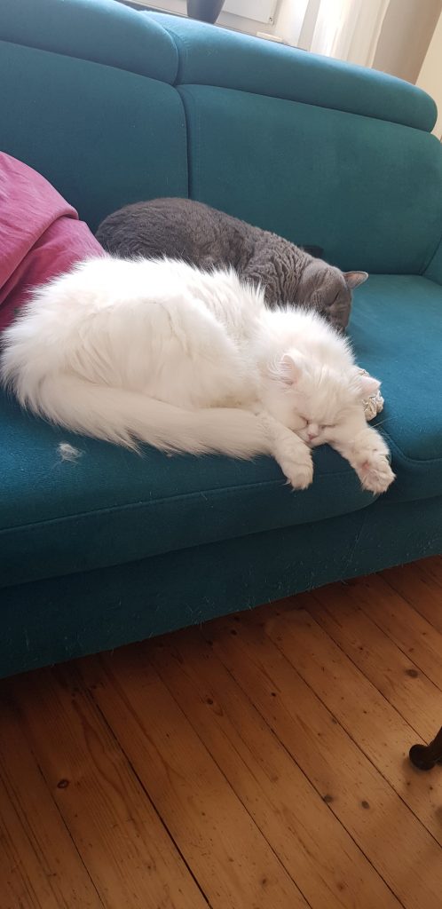 So, das war‘s erstmal von mir. Jetzt kommt die Katzenmama mit meinem Kamm – sie hilft mir, mein langes Fell schön zu halten. Das kostet im Moment viel Zeit, weil mein Winterfell sich verabschiedet, aber zusammen kriegen wie es ganz gut hin.