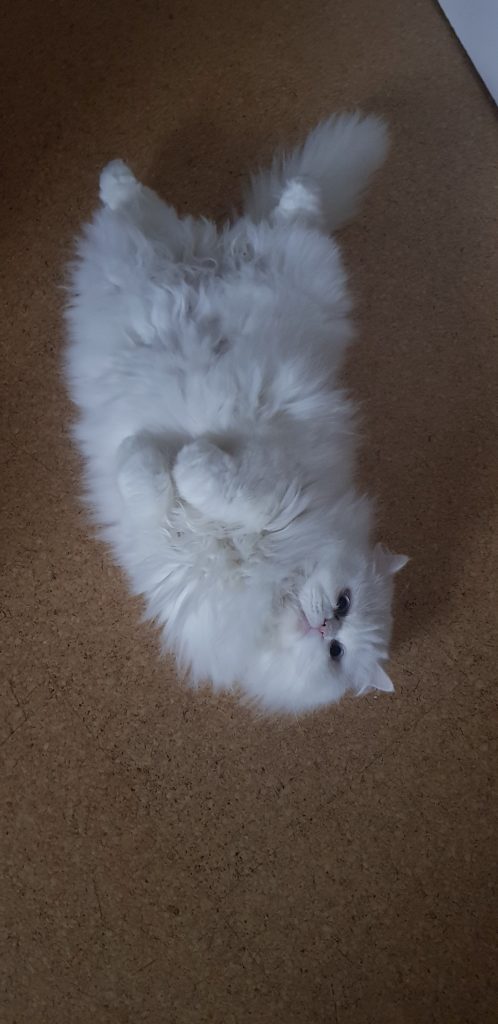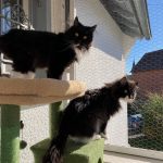 Wie ihr auf den Bildern sehen könnt, geht es mir mit meiner neuen Katzenfamilie sehr gut. Manchmal bin ich gerne für mich, aber manchmal liege ich mit einer meiner Katzenschwestern und wir machen ein Nickerchen zusammen. Die BKHs, Milly und Molly, sind jetzt auch meine Spielkameradinnen – jeden Tag jagen wir zusammen den roten Punkt, der manchmal erscheint, wenn unsere Katzenmama zu Hause ist – und ich muss sagen, ich bin tatsächlich die schnellste von allen. Trotzdem ist es mir noch nicht gelungen, den Punkt zu fangen, aber ich gebe nicht auf!