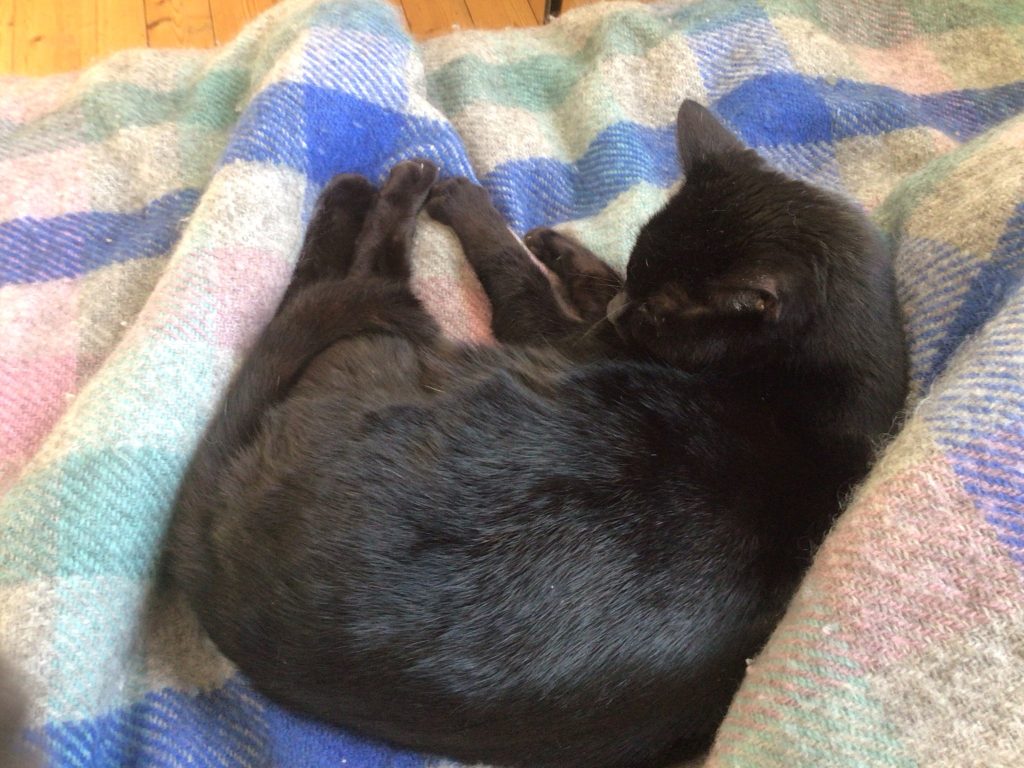 Unsere Katzenbrüder, Simon und Toby, sind auch ganz ok. Toby hat uns letzte Woche einen toten Vogel geschenkt – das fand ich sehr spannend, aber unsere Katzenmama hat geschimpft und den Vogel wieder nach draußen gebracht. Das fand ich ziemlich gemein von ihr – ich hätte ihr nie ein Geschenk weggenommen, aber so sind sie, die Menschen. Der Toby hatte sich auch richtig angestrengt, und war danach so müde, dass er sich auf dem Sofa ausruhen musste. Den sehr ihr beim Erholungsschlaf auf dem Bild – ich finde, er sieht mit seinem schwarzen Fell sehr gut aus.