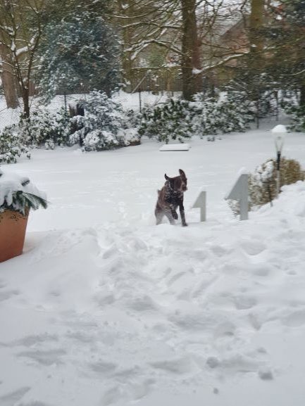 Wir glauben allerdings nicht, dass sie sich daran gewöhnen wird, auch mal für eine kurze Zeit alleine zu bleiben. Wir üben das zwar (immer nur für kurze Zeit), aber das gefällt ihr gar nicht. Sie beginnt zu suchen und räumt auch ein bisschen um :-). Mal sehen, was draus wird – Geduld ist gefragt. Als die Coronasituation es noch zuließ, war sie mit uns auf Sylt. Das war eine ganz aufregende Sache, Sandstrand und Nordseewellen und freies Laufen am menschenleeren Strand, das hat ihr und uns sehr gut gefallen und ruft nach Wiederholung, sobald die Zeiten besser werden.