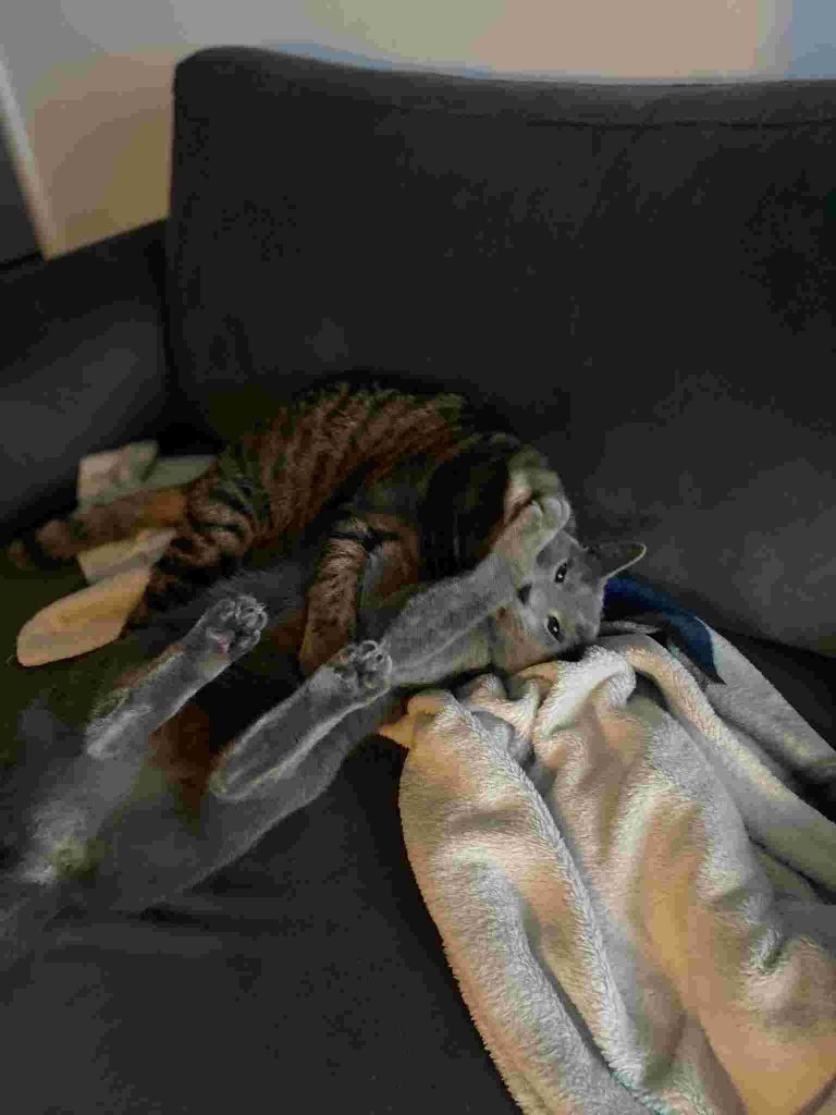 Eddie ist nun schon mehr als drei Monate bei mir und er fühlt sich sehr wohl 😊 Nach den anfänglichen Schwierigkeiten mit meinem anderen Kater habe ich mir doch große Sorgen gemacht, ob das alles so klappen wird. Beste Freunde werden die beiden wohl nicht mehr, trotzdem spielen sie miteinander und liegen auch mal schlafend nicht ganz so weit auseinander 😅 Eddie möchte gerne immer und überall dabei sein, daher spring er mir immer auf meine Schulter und guckt dann dabei zu wie ich koche, das Katzenklo sauber mache und und und… 🙈 Er ist sehr wild und hat schon so manche Dinge in meiner Wohnung zu Bruch gehen lassen, Chaos kann er!Naja, ich bin froh, dass er jetzt zu uns gehört und bin gespannt wie sich alles noch entwickelt 😊