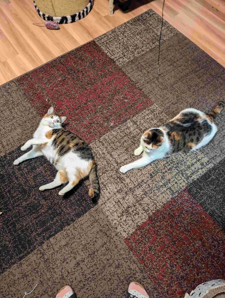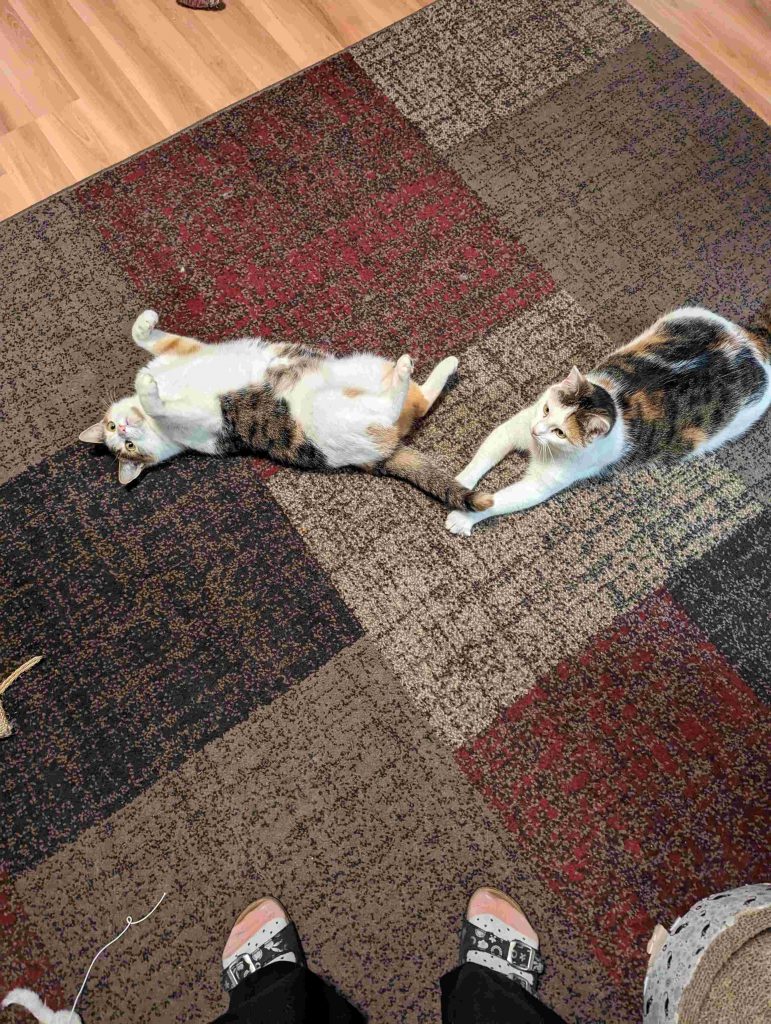 wie man sieht geht es den zweien richtig gut. 😁 Die Katzenklappe ist jetzt für alle offen.