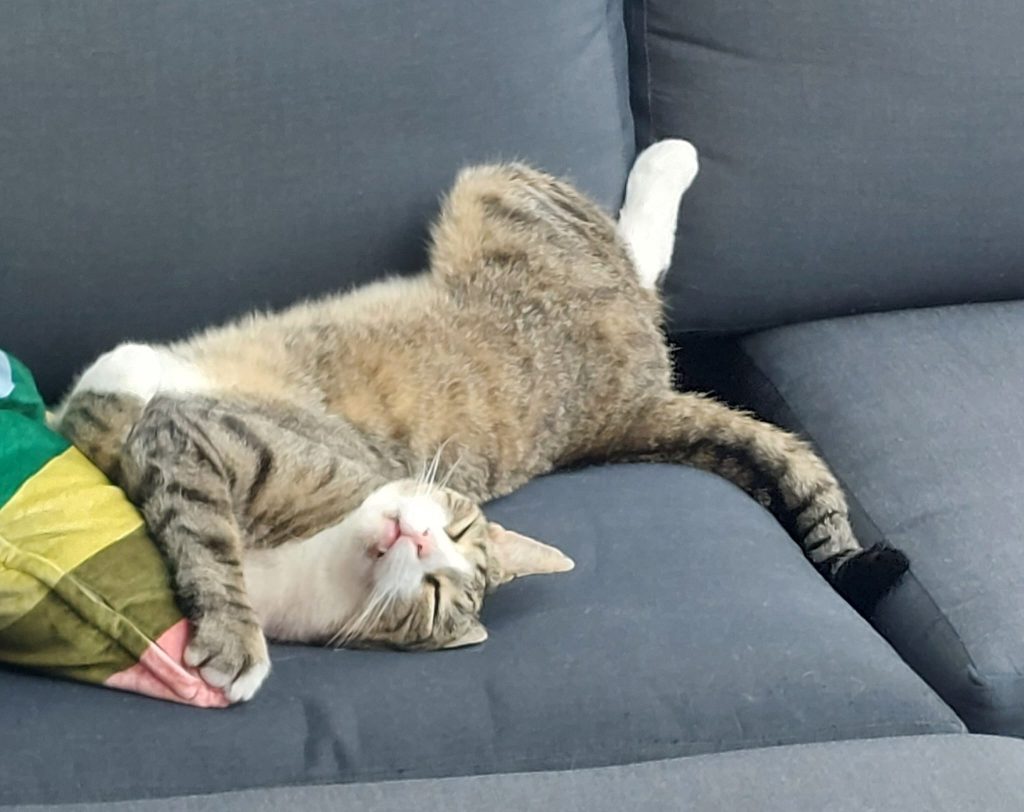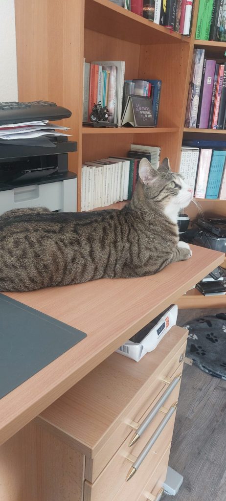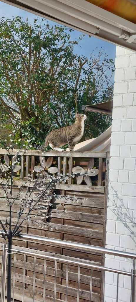 Elvis-der Schrecken der benachbarten Spitzmauskolonie-ist nun schon fast ein Jahr bei uns. Am Anfang hat er sich schwer getan. Er hat gebrochen, war unsicher und hat uns auf Schritt und Tritt verfolgt. Nun aber ist er angekommen -in unserem Garten und dem angrenzenden Friedhof. Er öffnet jede Türe, springt über die höchsten Zäune und toleriert den betagten Pudel nebenan – in dessen Garten. Aus der Nachbarschaft hagelt es Beschwerden, wenn Elvis nicht regelmäßig vorbei schaut und sich kraulen lässt. Nur von der Nachbarskatze Kaiser Franz wird er dominiert, da hat er wenig zu melden 😂 Frauen eben. Katzenklappe auflassen geht nicht , Elvis bringt regelmäßig Spitzmausgeschenke mit. Und wir sind gut für Türe-auf-Türe-zu-Futter-zack zack. Wir lieben ihn alle sehr und freuen uns jeden Tag über ihn.