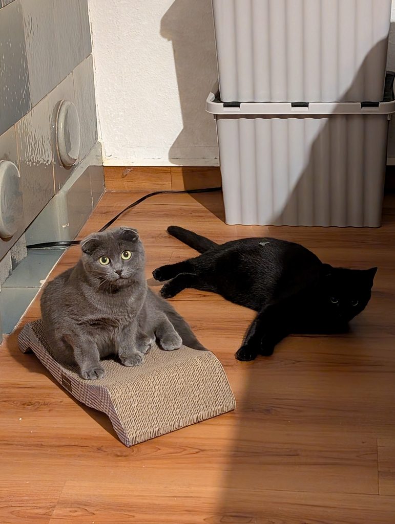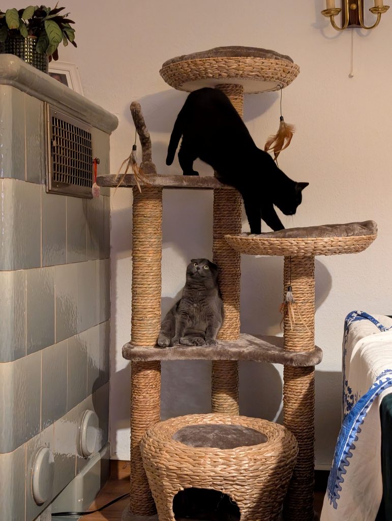 wir wollten uns mit einem kleinen Update unserer Angstkätzchen melden. Sie heißen bei uns Mascha und Juri und haben ihren Einzug bisher gut überstanden. Beide fressen und gewöhnen sich allmählich an uns. Der Kratzbaum ist das neue Highlight und lädt zum Entspannen und Spielen ein 🙂