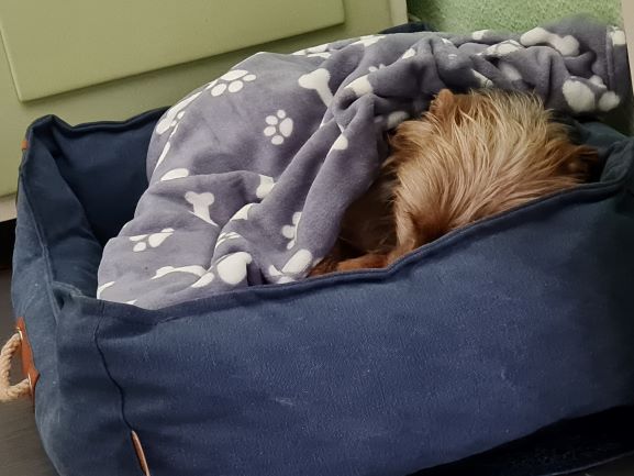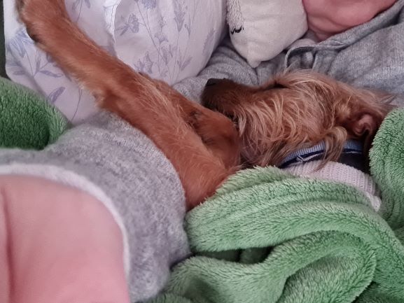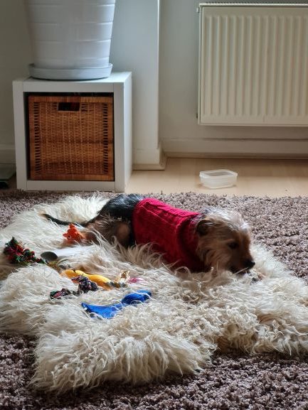 Sie geht gerne spazieren ,liebt es zu kuscheln und wartet gehorsam an der Kühlschranktür.