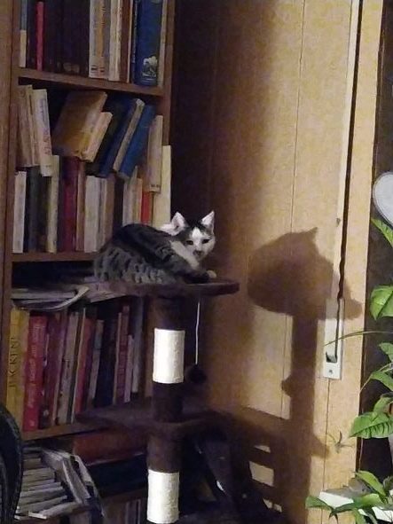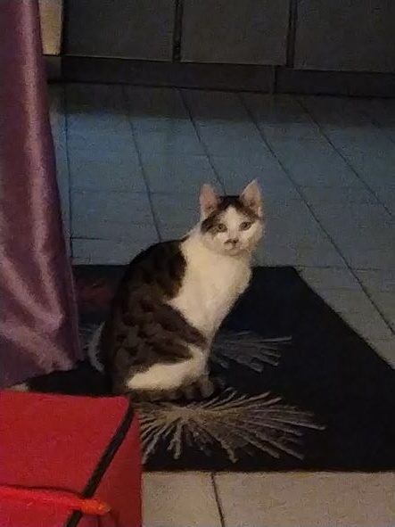 Nachts streift sie durch Haus und traut sich auch schon mal in unsere Nähe. Ihren Schlafplatz benutzt sie ,wenn sie ungewohntes hört,sucht sie ihr Versteck auf .