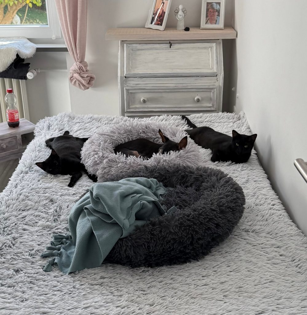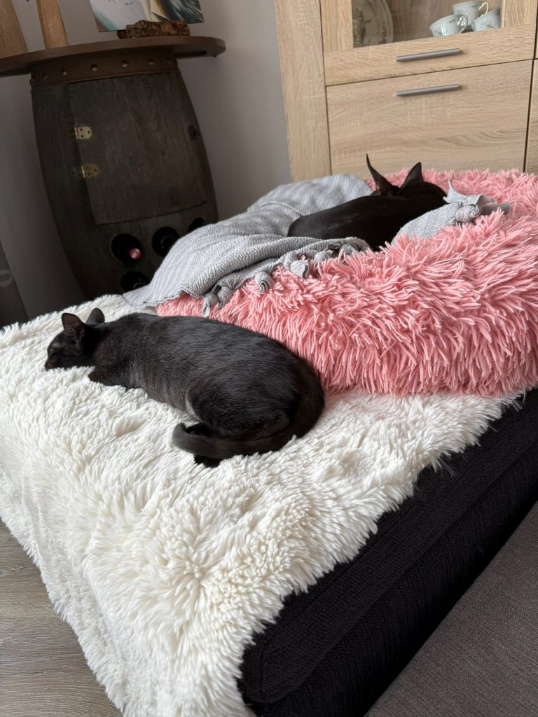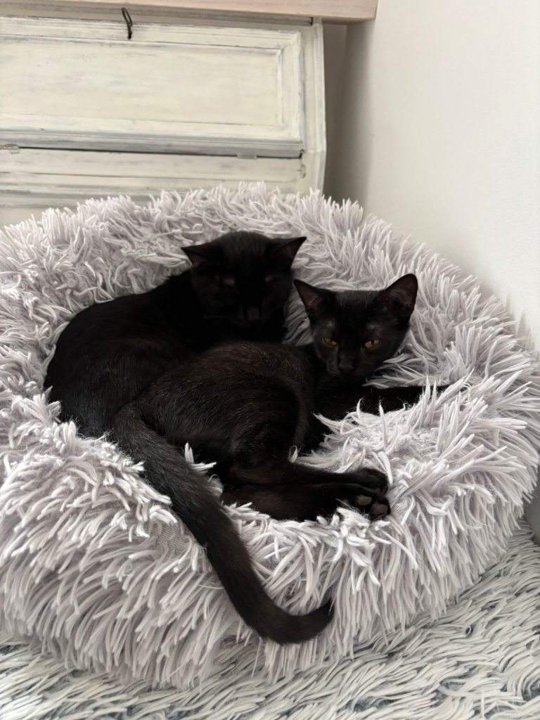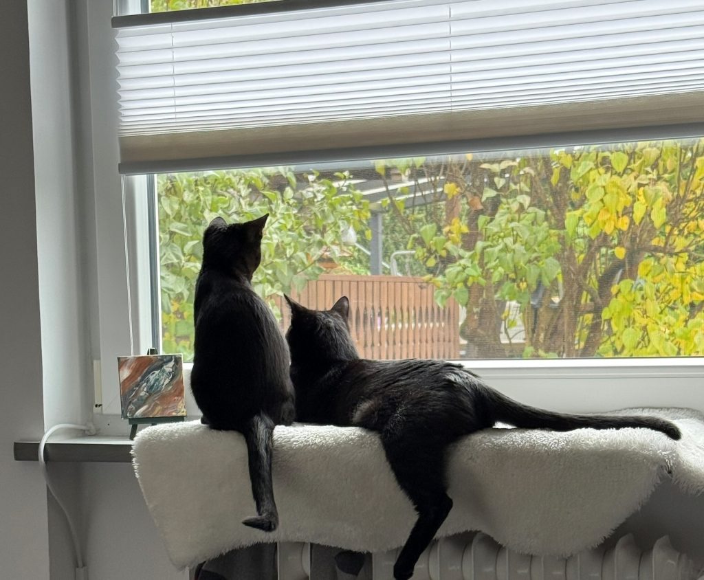 wir, Elli & Nino, sind gut in unserem neuen Zuhause angekommen. Die ersten zwei Tage waren wir noch sehr vorsichtig und mussten erstmal schauen, wo und bei wem wir hier gelandet sind. Schnell haben wir aber gemerkt, dass unsere Familie sehr lieb ist und wir keine Angst haben brauchen. Wir haben dann auch den Hund im Haus kennengelernt und der ist wirklich in Ordnung. Sie lässt uns in Ruhe und wir sie eigentlich auch. Manchmal spielen wir bei ihr im Zimmer und stören sie beim Schlafen, dann bellt sie und meckert und wir gehen lieber wieder. Einen Besuchshund kennen wir auch schon und mit dem kuscheln wir auch manchmal. Unser Alltag besteht zum größten Teil aus Spielen und Toben, zwischendurch kuscheln und manchmal schlafen wir auch. Das ist aber nicht so unser Ding und der Hund hier schläft auch schon genug. Sonst wäre unserer Familie ja auch wirklich langweilig. Wir schauen auch sehr gerne aus dem Fenster und beobachten die Vögel, Nachbarn und die Müllabfuhr. Außerdem beschäftigen wir uns gerne mit Deko, das mag Mama aber irgendwie nicht. Ninos Element ist übrigens Wasser. Er liebt es mit den Pfoten im Wasser zu spielen und zu graben. Wir sind beide negativ auf FIV getestet worden und Nino ist auch schon kastriert. Ich war noch zu klein und bin dann im November dran. Das Futter hier schmeckt sehr gut und wir wiegen mittlerweile 3,4kg und 2,5kg. Wir wachsen und gedeihen also gut und wir könnten uns kein besseres Zuhause vorstellen. Wir danken euch von Herzen, dass ihr uns beim Start ins Leben geholfen und diese Familie für uns ausgesucht habt!