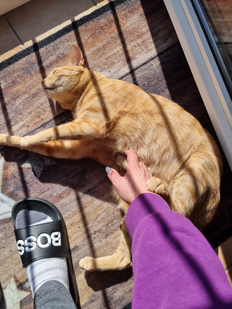 Flynn ist gesund und erobert die Herzen im ganzen Haus (ich lebe im Mehrgenerationenhaushalt mit meiner Mutter und Großeltern). Er liebt es in der Sonne zu baden und fühlt sich pudelwohl.