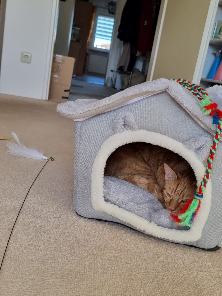 Anfänglich hatte er ein bisschen mit seiner Verdauung zu kämpfen, das hat sich nun aber gelegt und er ist kerngesund. Er hat eine Kletterwand bekommen und liebt unsere täglichen Kuschel- und Spieleinheiten. Manchmal passiert ihm ein Pipi-Unfall… daran arbeiten wir derzeit. Ich freue mich jeden Tag unendlich sehr aufs Neue, dass der kleine Mann bei mir lebt!