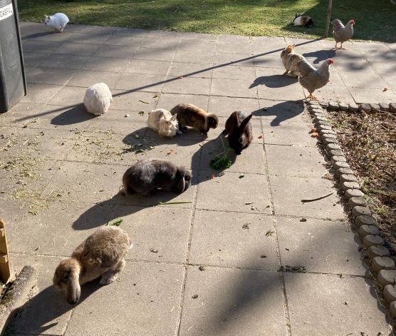 am 16.03.22 ist Fuchsia (jetzt Martha) bei uns eingezogen. Sie hatte sich bereits nach wenigen Tagen gut in die Kaninchengruppe eingelebt. Anbei ein paar Fotos von Martha und ihren neuen Freunden.