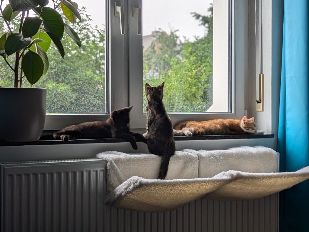 Killua (Fury) und Gon (Flo) sind schon ziemlich zutraulich und extrem verspielt. Bisky (Flora) ist noch ängstlich und immer auf der Hut, um schnell „in Sicherheit“ zu verschwinden. Aber sie lässt sich auch mal streicheln und hochnehmen.