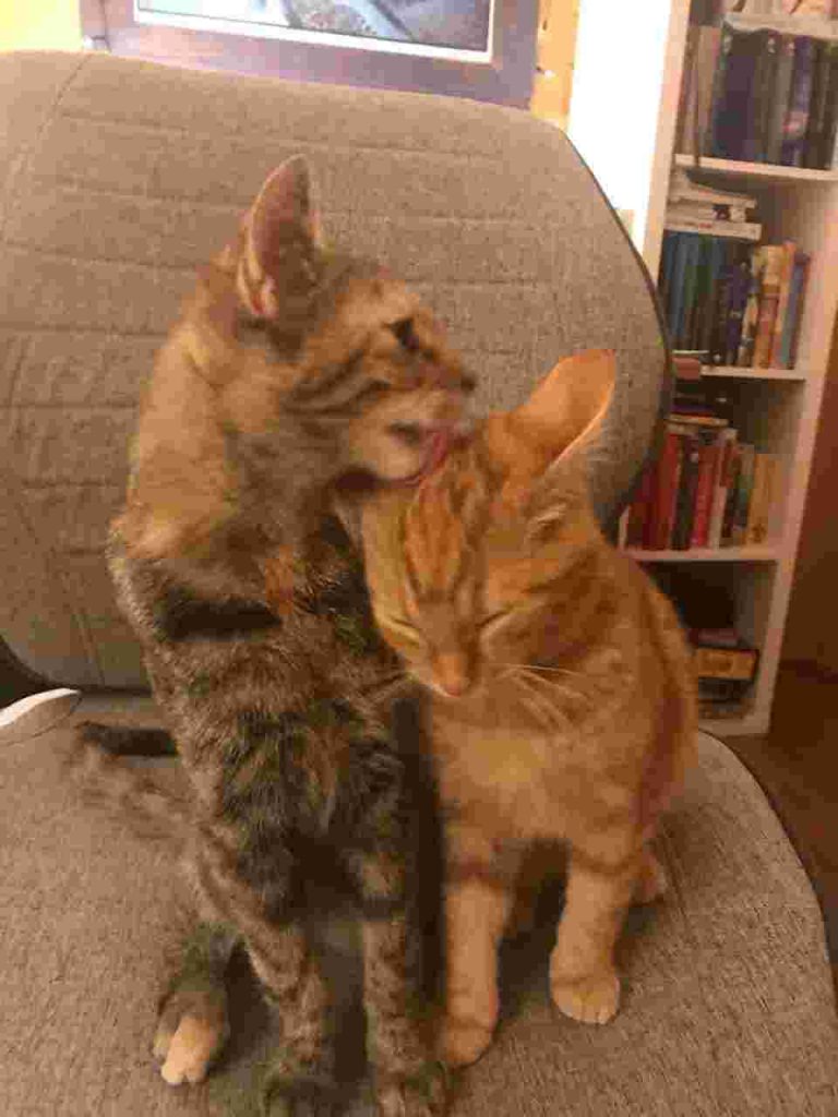 I-Aah heißt jetzt Oscar und ist dabei sich einzuleben. Er hat sich 2 Tage versteckt, sodass wir ihn dann doch vorsichtig hervorgeholt haben. Nach einer Kuscheleinheit mit Schnurren war das Eis dann gebrochen und er hat von da an plötzlich mehr erkundet und mit seiner neuen Freundin Ellie gespielt. Jetzt kennt er schon das ganze Haus, nutzt den Kletternaum bis hoch unter die Decke und das Futter schmeckt ihm auch. Der Hund wurde nicht einmal angefaucht. Für die ältere Katze ist es auch ok, weil die zwei Kleinen jetzt sich haben.