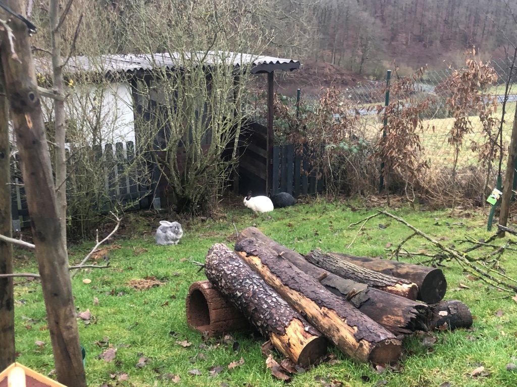 will bescheid geben, dass die Vergesellschaftung der dreien auf Anhieb geklappt hat. Clyde war von den beiden Damen direkt begeistert und diese auch ganz aufgeschlossen. Es lief so gut, dass die drei direkt am selben Tag noch in ihr Gehege einziehen konnten. Nun genießen sie den Platz und den täglichen Auslauf in den Garten (100m2). Clyde springt nun wieder fröhlich durch das Gehege und es wird viel gekuschelt, die beiden tun ihm sehr gut. Hier sieht man mal wieder wie wichtig der Sozialkontakt ist. Kathleen und Haidley liegen bei trockenem Wetter am liebsten im Garten und chillen. Zwischendurch wird auch mal eine Runde geflitzt, mit noch zarten Bocksprüngen.