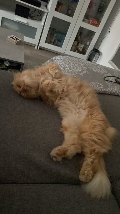 seit dem 29. Oktober ist Kiril nun bei mir zu Hause und was soll ich sagen… es könnte nicht besser laufen ☺️. Meine schlimmsten anfänglichen Befürchtungen sind nicht wahr geworden – im Gegenteil. Der kleine Löwe verhält sich seit Sekunde 1 als wäre er nie woanders gewesen. Angekommen in meiner Wohnung ist er aus der Tasche raus und hat sich direkt am Trockenfutter bedient. Danach kam er zu mir und hat meine Nähe gesucht. Seit dem sind wir unzertrennlich. Er ist ein richtiger Schmuser und der liebste Kater, den ich mir nur vorstellen kann. Ihn zu bürsten/kämmen ist gar kein Problem und selbst die Krallen lässt er sich von mir kürzen. Ich habe das Gefühl, er ist richtig dankbar, dass er bei mir sein Einzelprinz-Dasein in vollen Zügen genießen kann 🥰