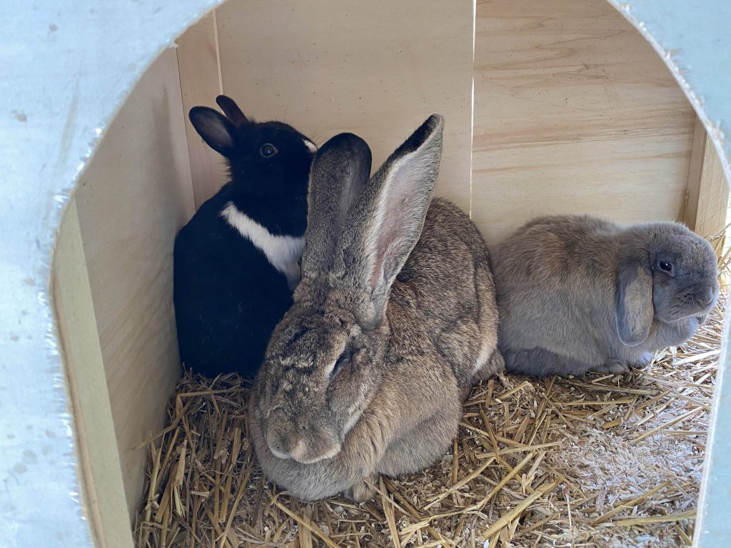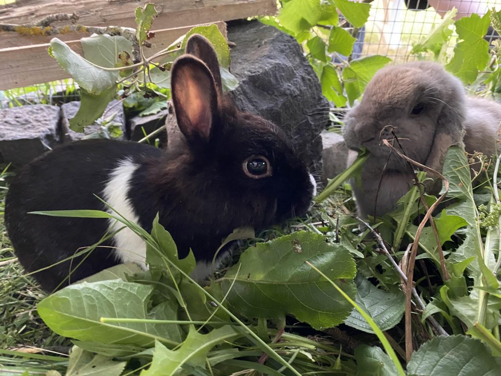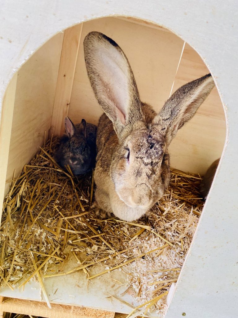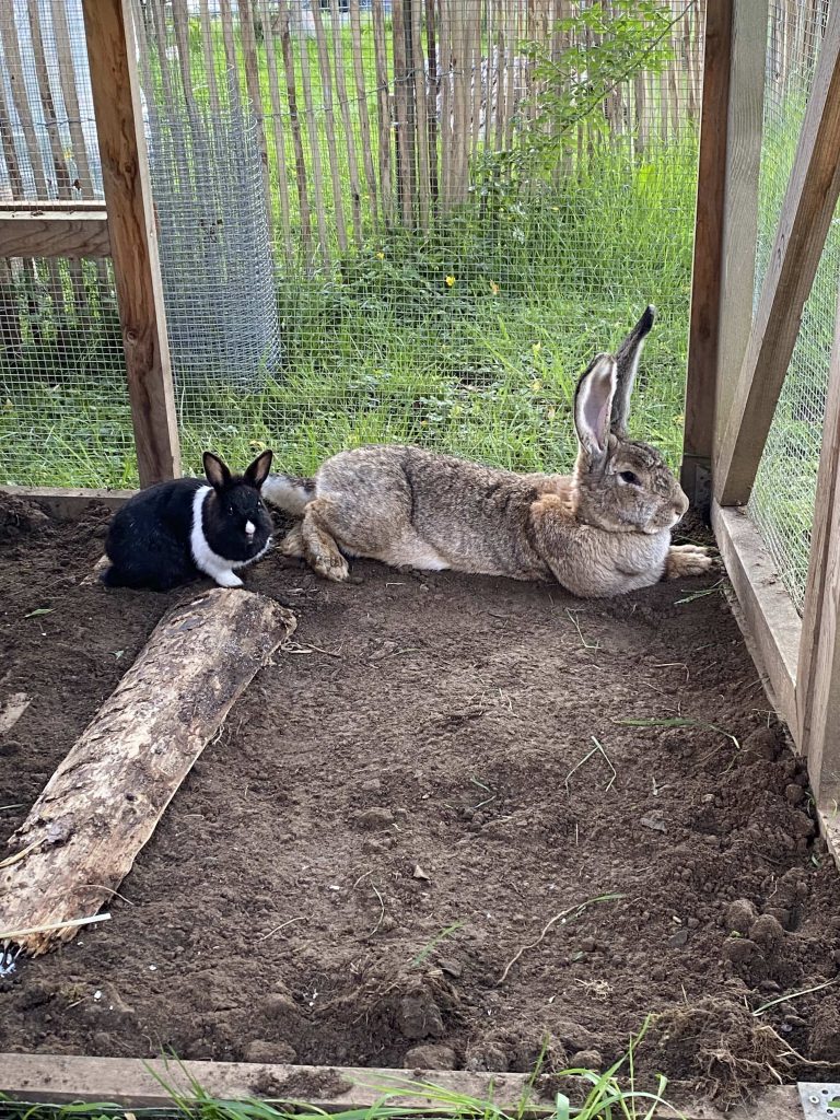 Die Vergesellschaftung hat wunderbar geklappt. Auch mit dem Kaninchen (Deutscher Riese, namens Frida) aus dem Nachbardorf.