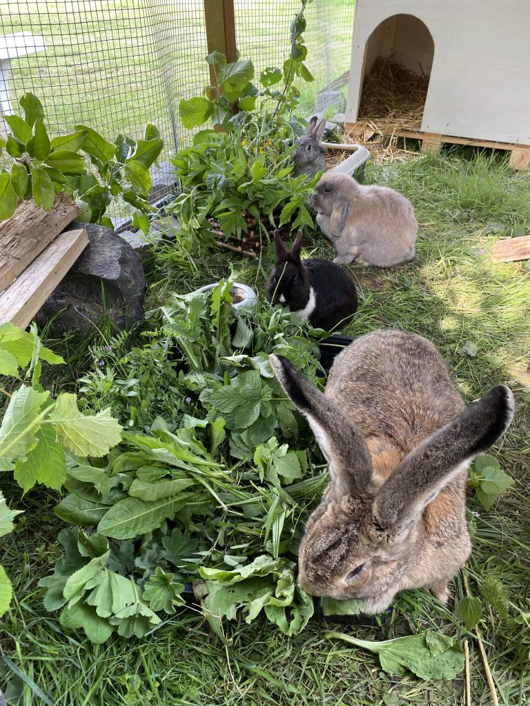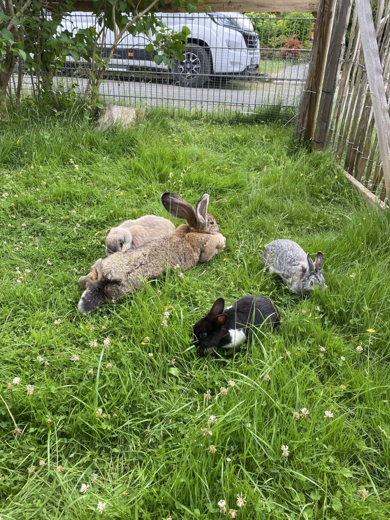 Gestern habe ich noch mehr Staketenzaun besorgt, dann werden sie nun Tagsüber so um die 50m2 zum Hoppeln und Mümmeln haben :-). Das mardersichere Gehege ist nun immerhin auf ~17m2 vergrößert :-).