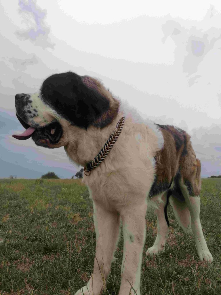 Anbei ein Bild von seinem neuen Halsband, es ist nicht leicht ein so großes, hübsches zu finden was nicht auch so wuchtig breit ist.