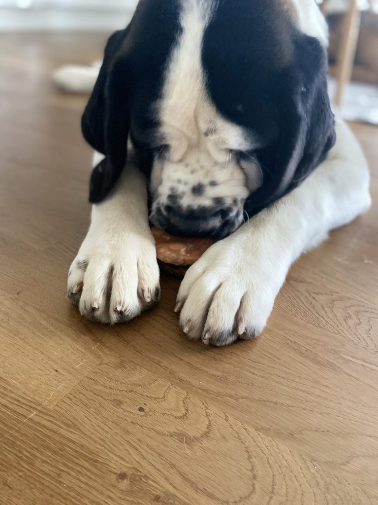 Sein neuer Lieblingssnack sind Hundeleberwurst Schmeckies und Hundewürstchen.