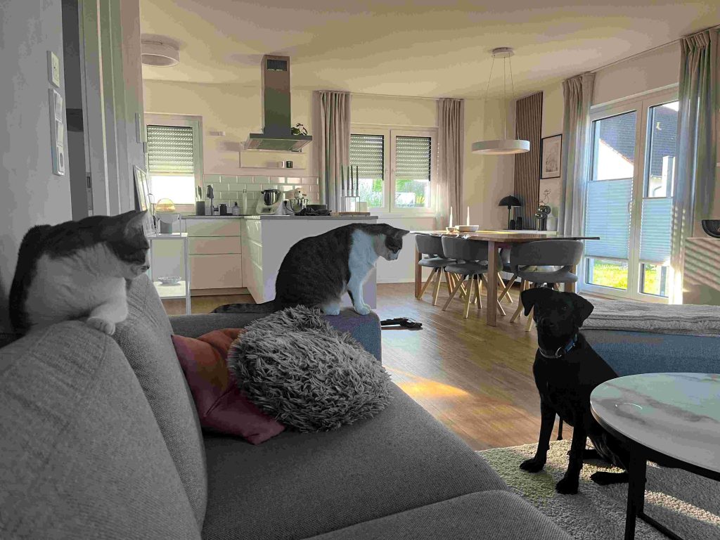 Sie beherrscht mittlerweile die Grundkommandos, läuft frei im Feld, versteht sich immer besser mit unseren Katzen und freut sich in ihrem Garten zu toben. Leider klappt das alleine bleiben noch nicht so gut .. wir sind zuversichtlich das sie das in der nächsten Zeit aber auch gut macht.