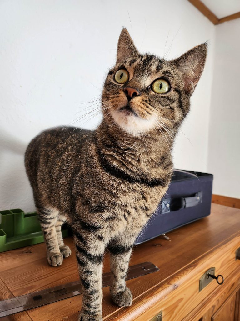 Da wir Menschen ja schon lange Erfahrung mit Katzenhaltung haben, waren wir tatsächlich sehr überrascht, als Lina bei uns eingezogen ist. Sie hat beim Einzug lediglich 3 Stunden im Wohnzimmer unter der Couch verbracht. Es gab überhaupt keine Reibereien mit unseren anderen beiden Katzendamen. Von Anfang an herrschte Harmonie in der Truppe. Lina hat in ihrem Tempo das Haus kennengelernt. Beim Füttern hat sich sich von Anfang an mit angestellt und wartet, dass sie ihren Napf bekommt. Sie hat sich einige Liegstellen auserkoren, wo sie den größten Teil des Tages verschläft. Mit ihrer Katzenfreundin wird abends gespielt.Ebenso positiv ist sie uns Menschen zugewandt. Sie macht keinerlei Probleme. Für uns ist es so, als wäre sie immer schon bei uns gewesen. Mit Lina haben wir genau die Katzendame gefunden, die wir gesucht hatten und wir glauben, dass Lina auf uns gewartet hat.